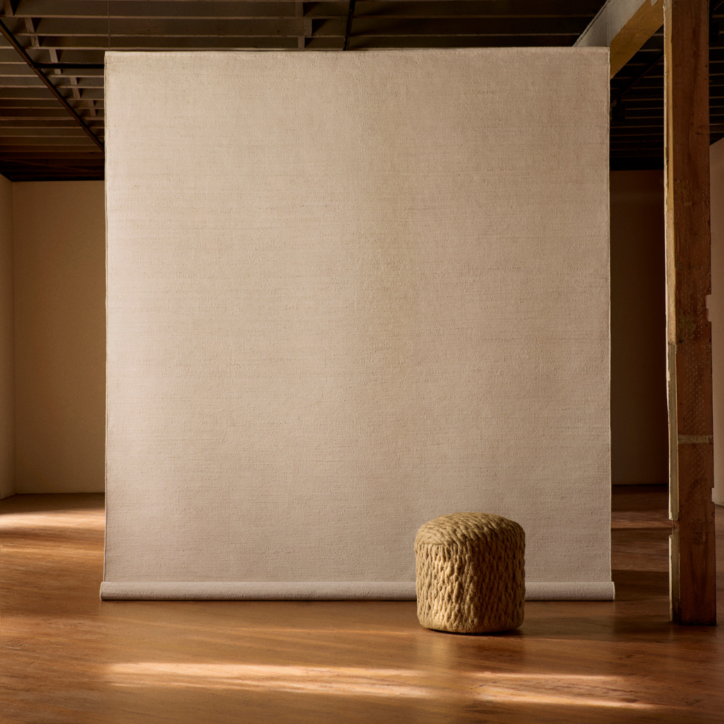 Laying down legacy, Aerie possesses a quiet, intentional strength. Its taut linen warp against a weft woven from alternating wool and jute yarns reveals tonal variations speckled across its fine grid-like surface that invite tactile exploration. Deceptively robust, it is ideal for busy areas of the home.