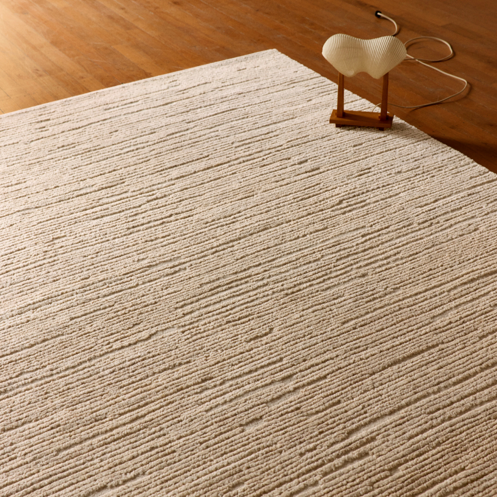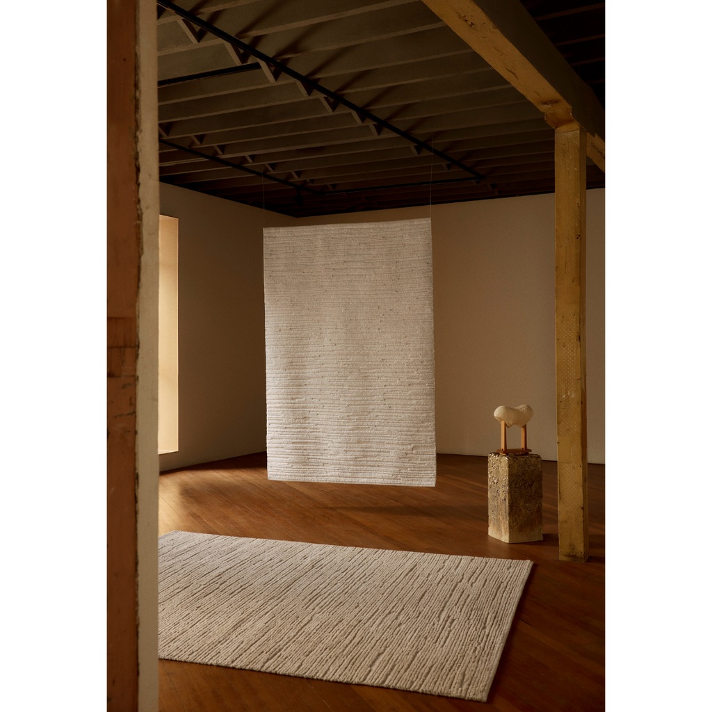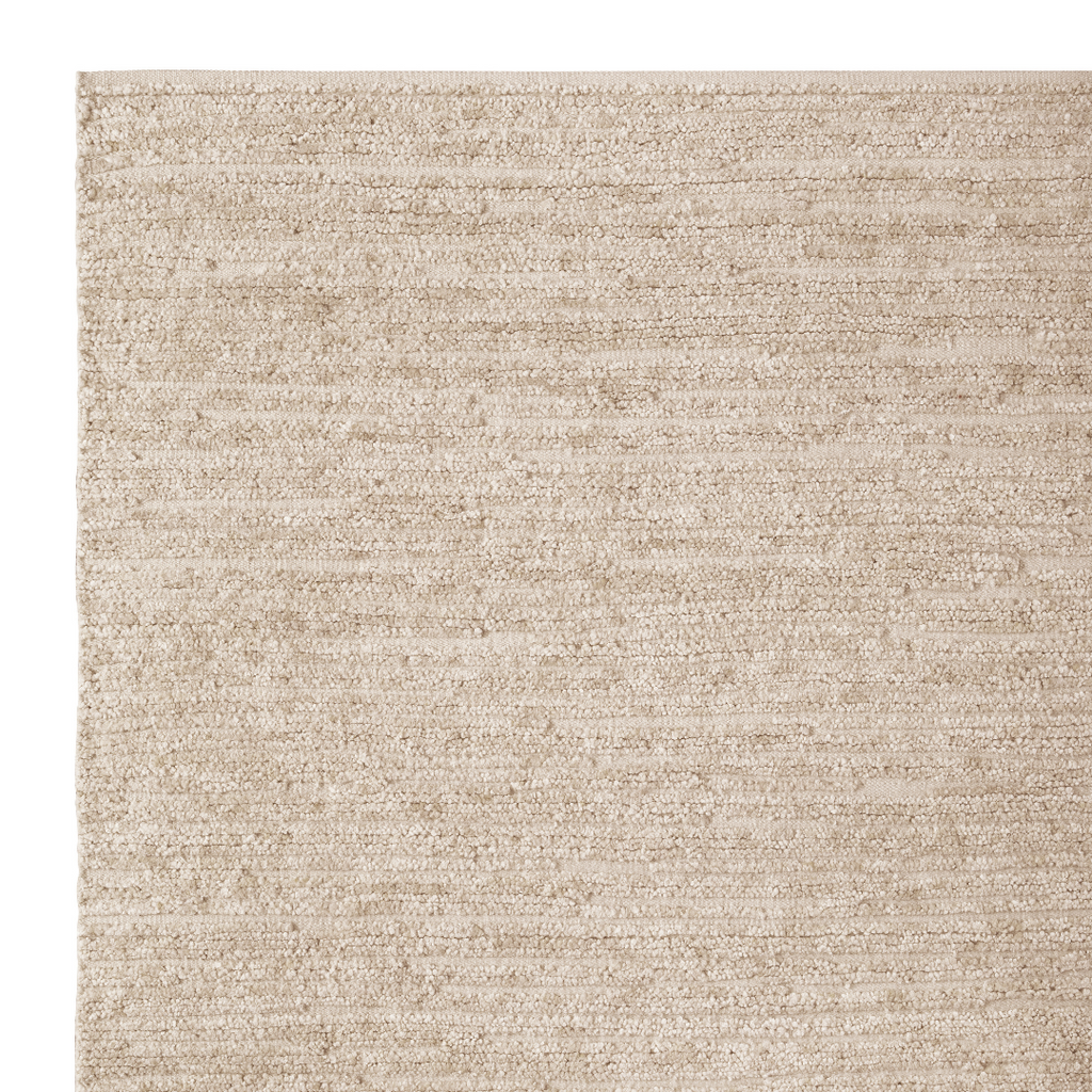 Richly textural, Cirrus is crafted from hand-knotted wool, enabling pillowy piles to rise above its base in an organically banded rhythm. Bound within an immaculate turnover, it conjures an air of quiet contemplation. Ideal for lounge rooms and bedrooms, cloud-soft landings nurture sensorial pleasure underfoot.
