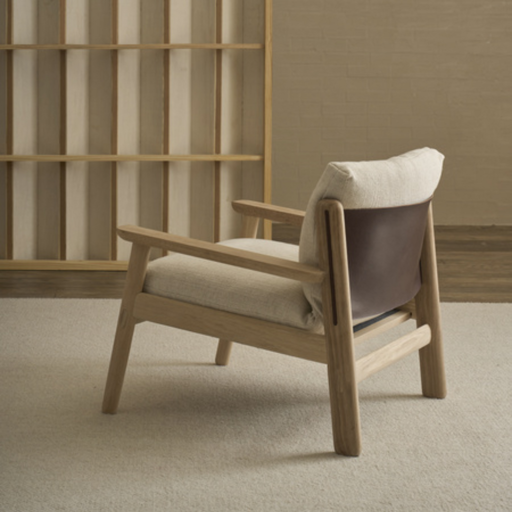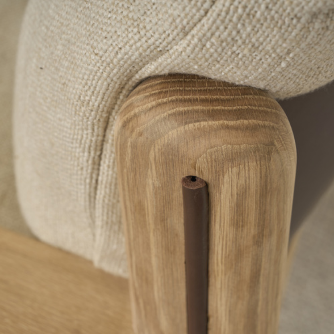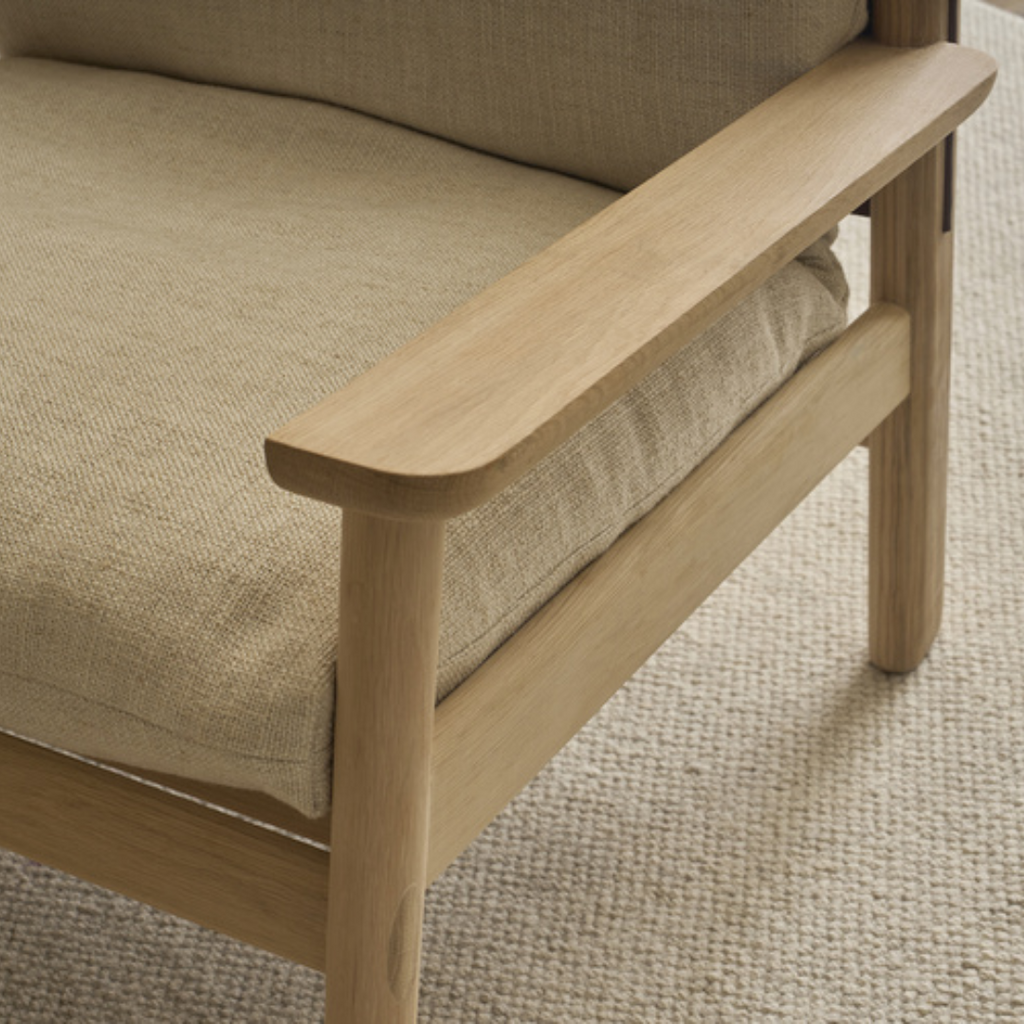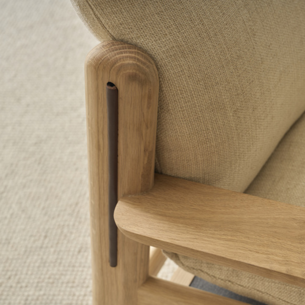 Cameron Foggo’s Wren chair showcases real craftsmanship and celebrates the power of natural materials. Hand-sanded oval shapes and subtle tapered sections lend a softness to the solid oak frame. Visible tenon joins evoke the golden era of Danish woodworking and imbue the chair with a timeless quality.