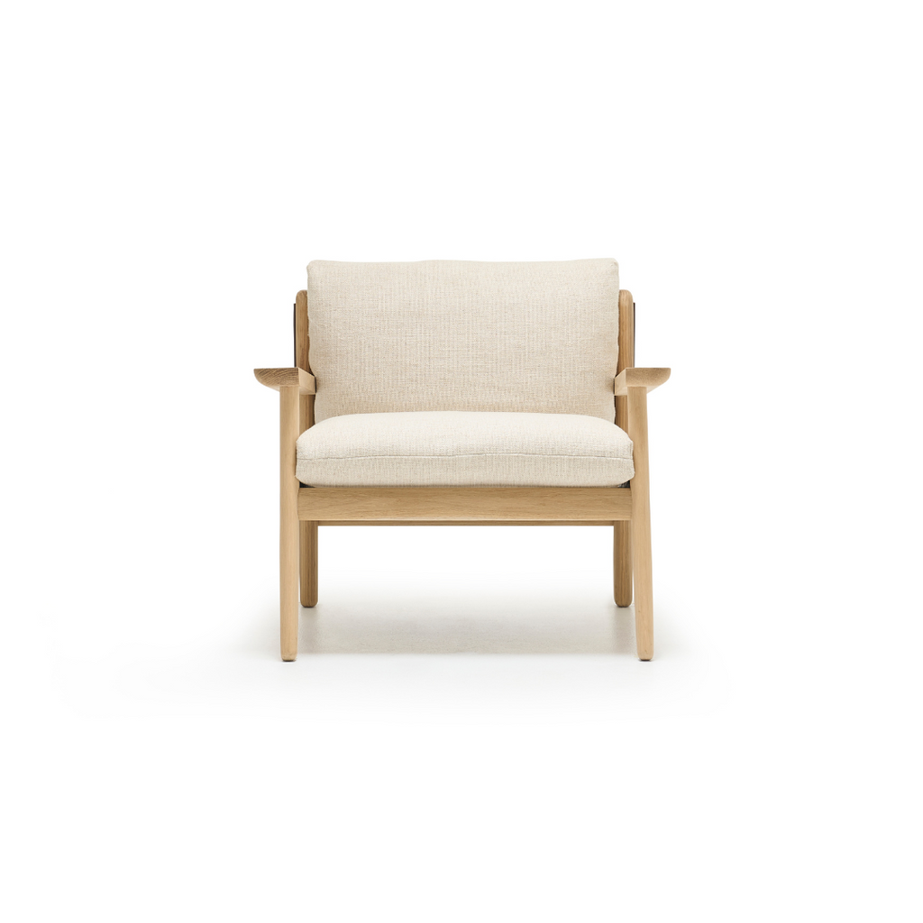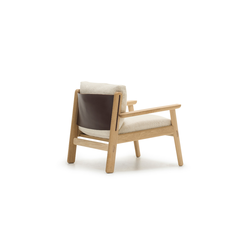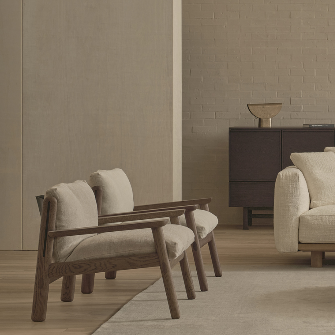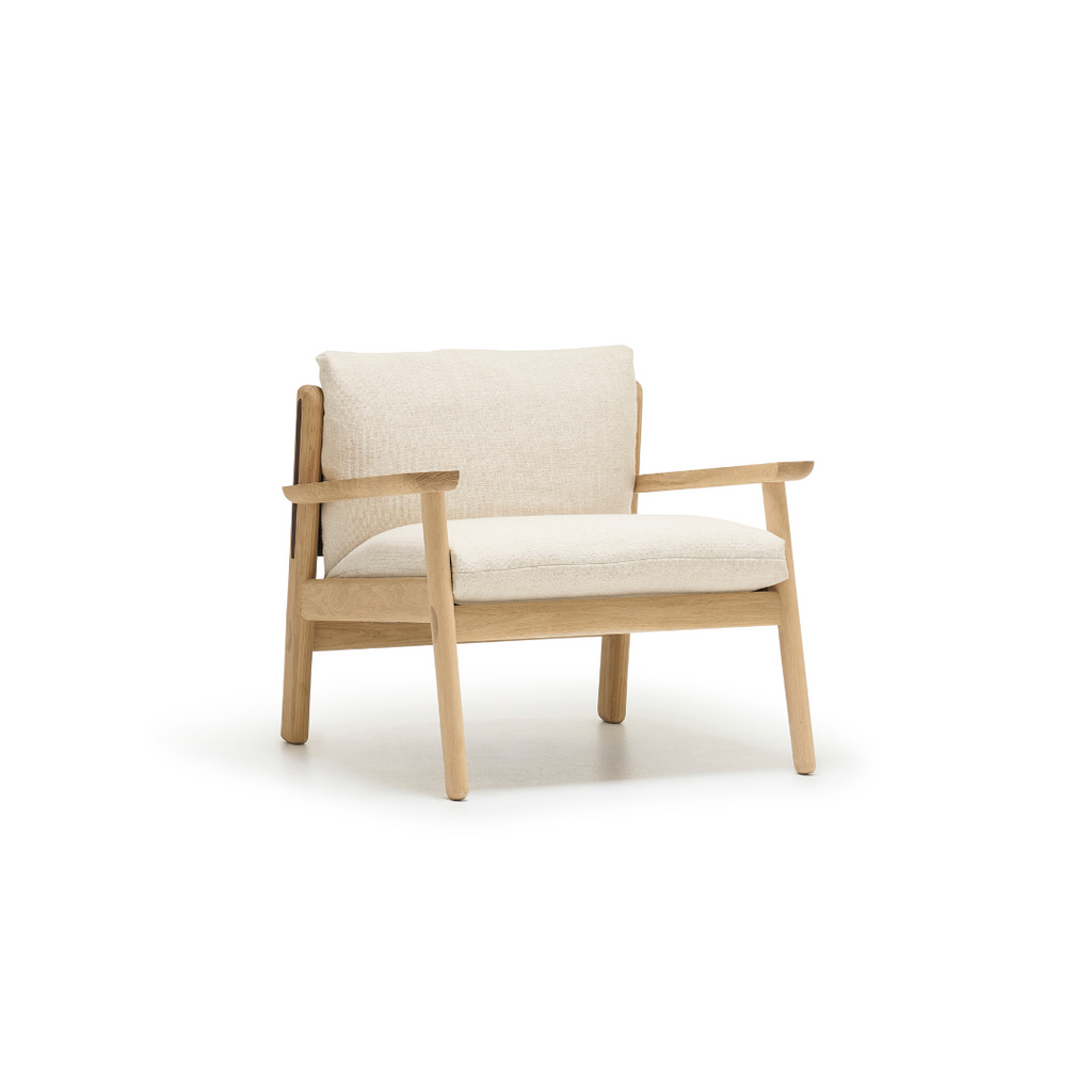 Cameron Foggo’s Wren chair showcases real craftsmanship and celebrates the power of natural materials. Hand-sanded oval shapes and subtle tapered sections lend a softness to the solid oak frame. Visible tenon joins evoke the golden era of Danish woodworking and imbue the chair with a timeless quality.