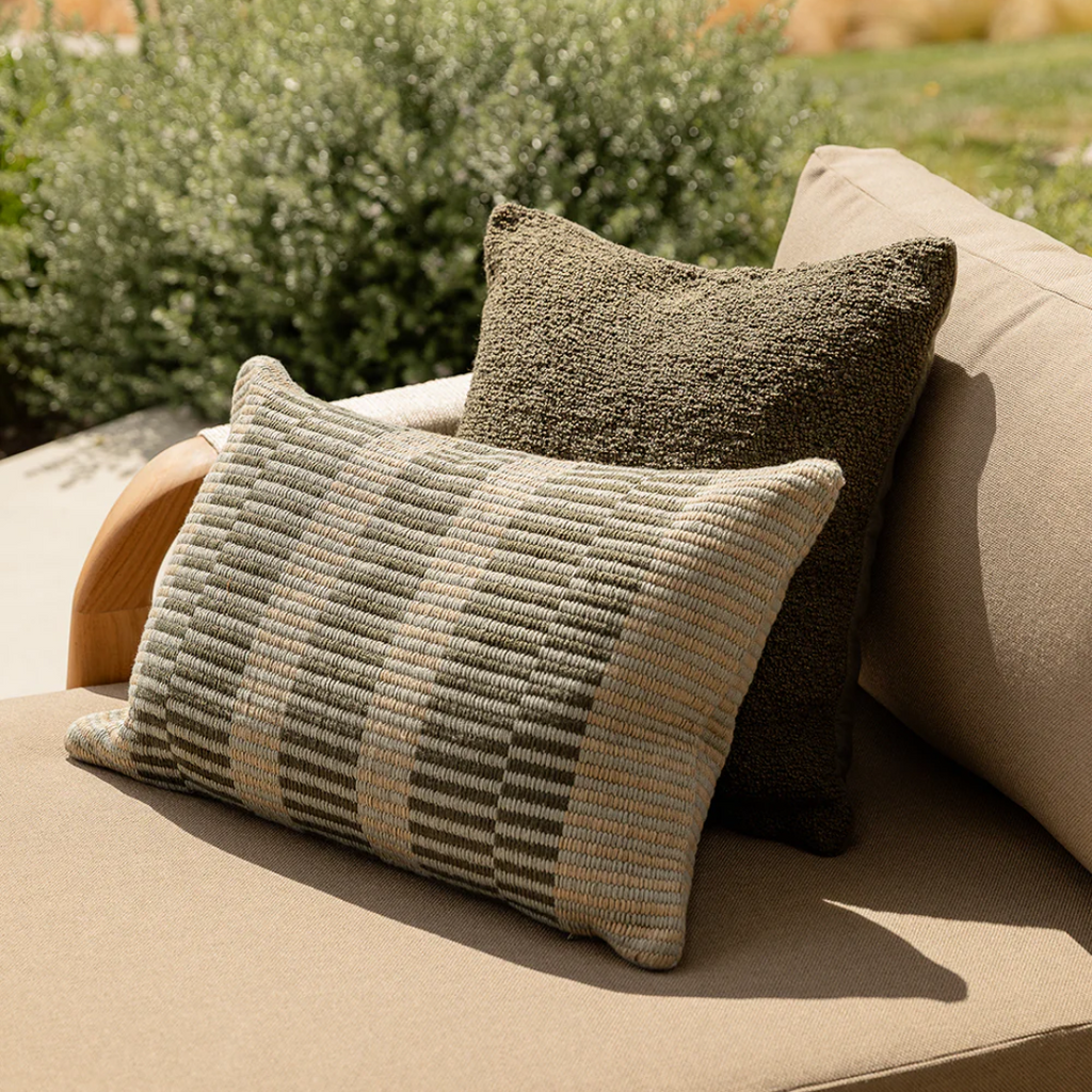 Bring your interior style outdoors with the artisan quality of the Sol cushion. Intricately handwoven in almond and terracotta tones, the offset linear design adds a striking focal point to exterior settings. Both functional and beautiful, this durable lumbar works just as well styled indoors, especially in areas exposed to sunlight. Pair with complementary terracotta and almond tones to emphasise the design and colour palette.