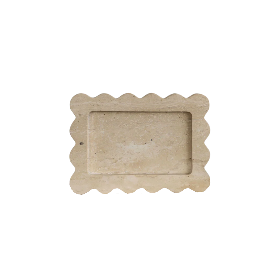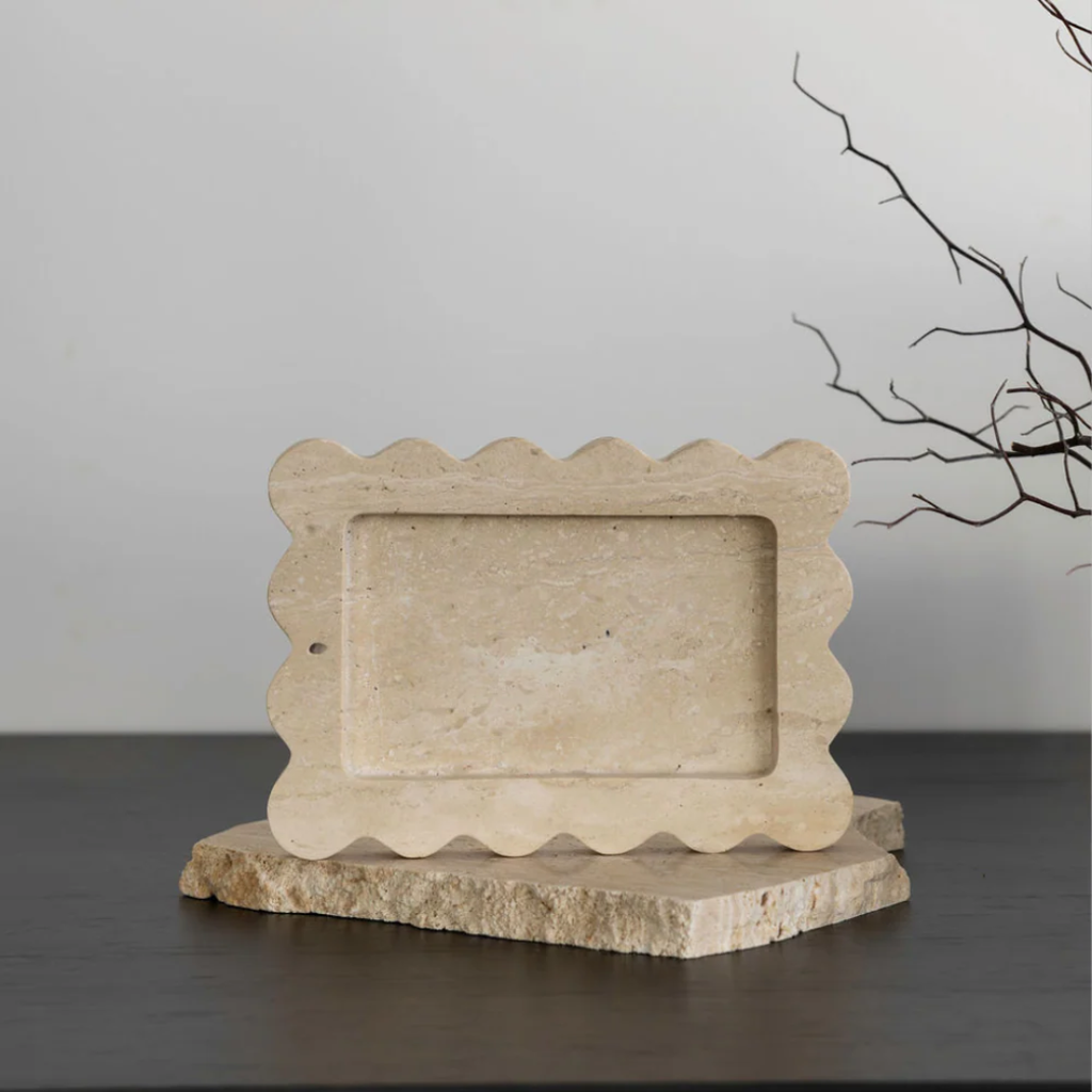 Palazzo Small Scalloped Tray & Incense Burner | Beige Travertine