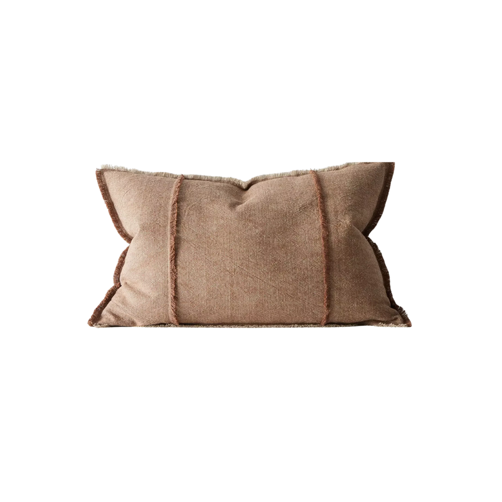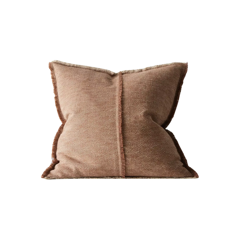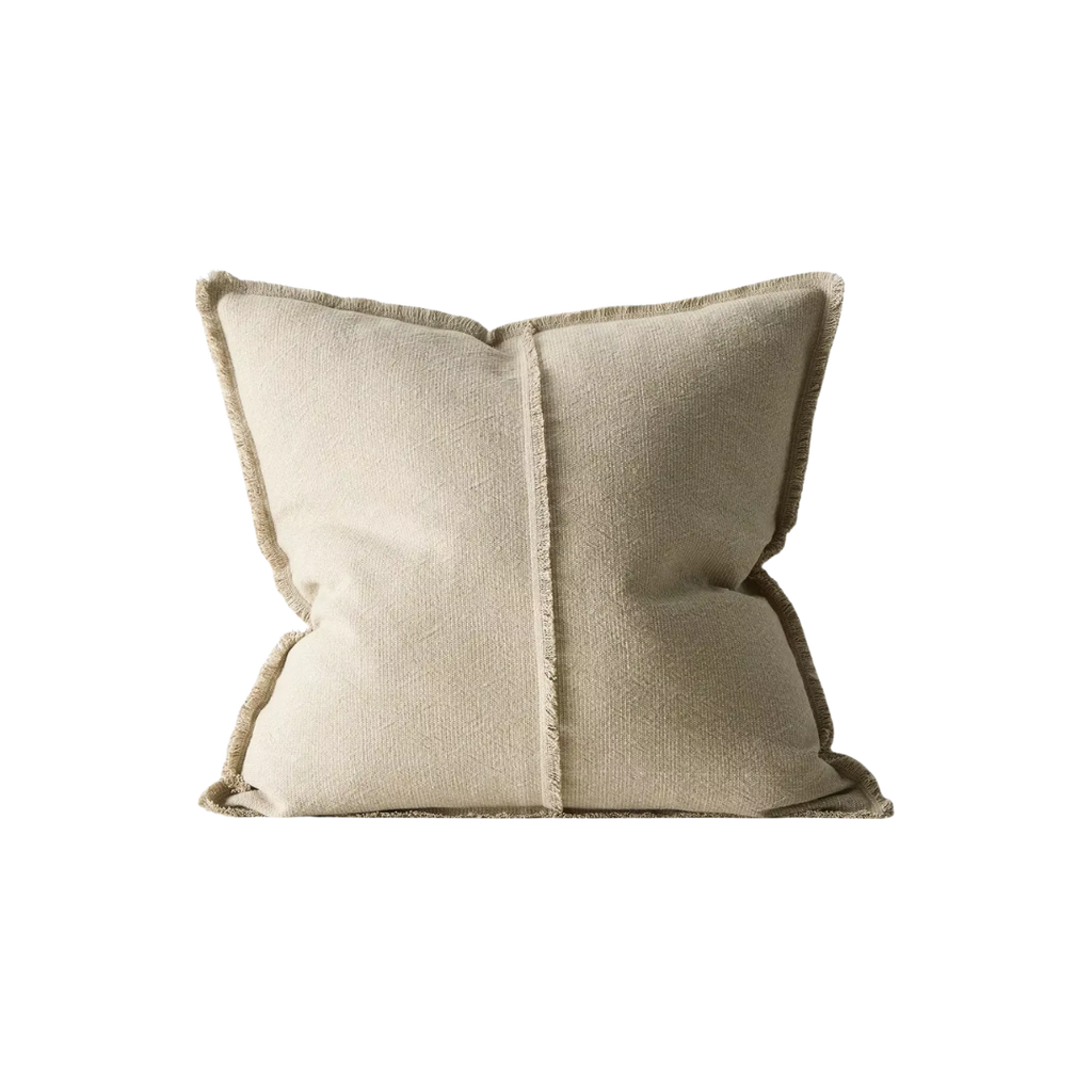 Quietly sophisticated, the Adela cushion is all about texture and thoughtful detail. Designed with intention, its subtle two-tone weave and organic textured surface offer a tactile finish that feels as good as it looks. The raw-edged fringe, featuring two interwoven colours, adds a refined point of interest without overpowering, bridging the gap between a plain and a textured design.