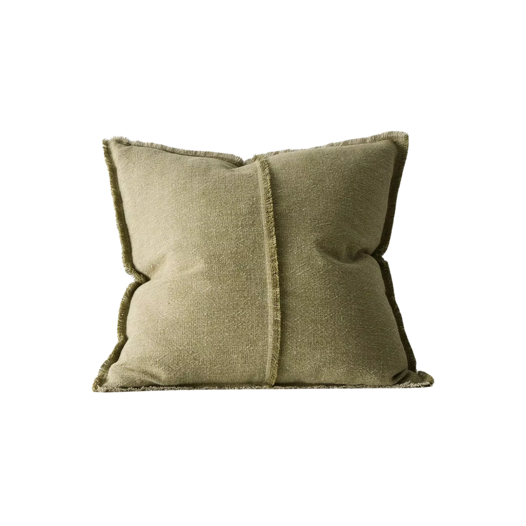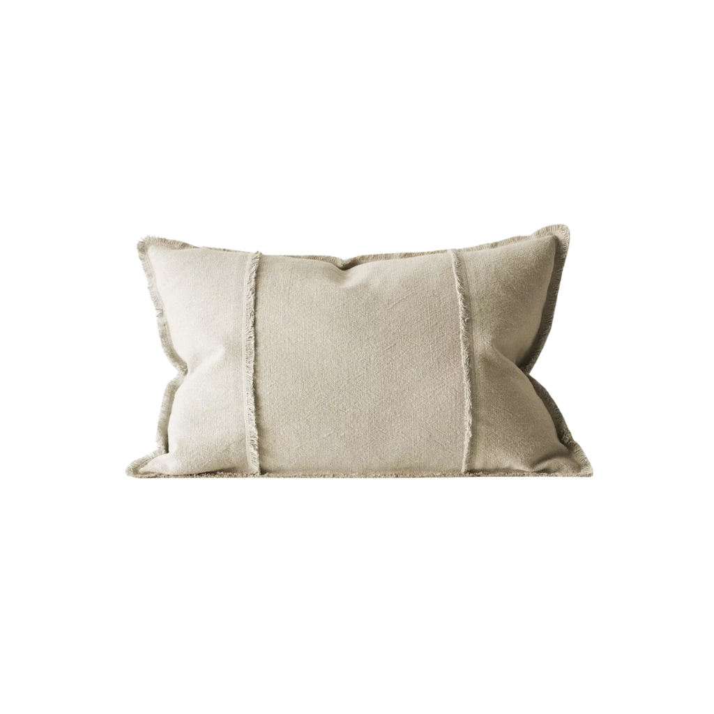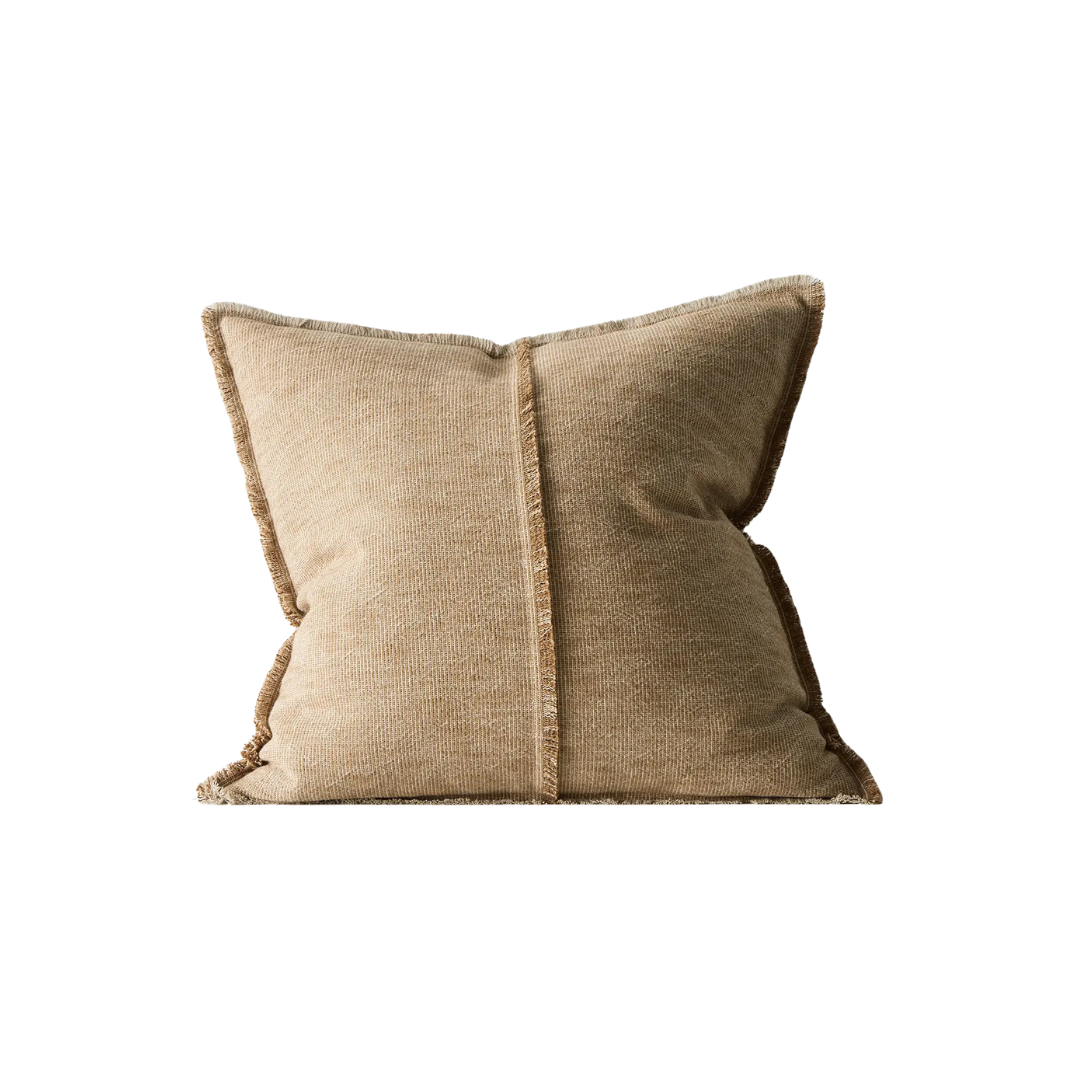 Quietly sophisticated, the Adela cushion is all about texture and thoughtful detail. Designed with intention, its subtle two-tone weave and organic textured surface offer a tactile finish that feels as good as it looks. The raw-edged fringe, featuring two interwoven colours, adds a refined point of interest without overpowering, bridging the gap between a plain and a textured design.