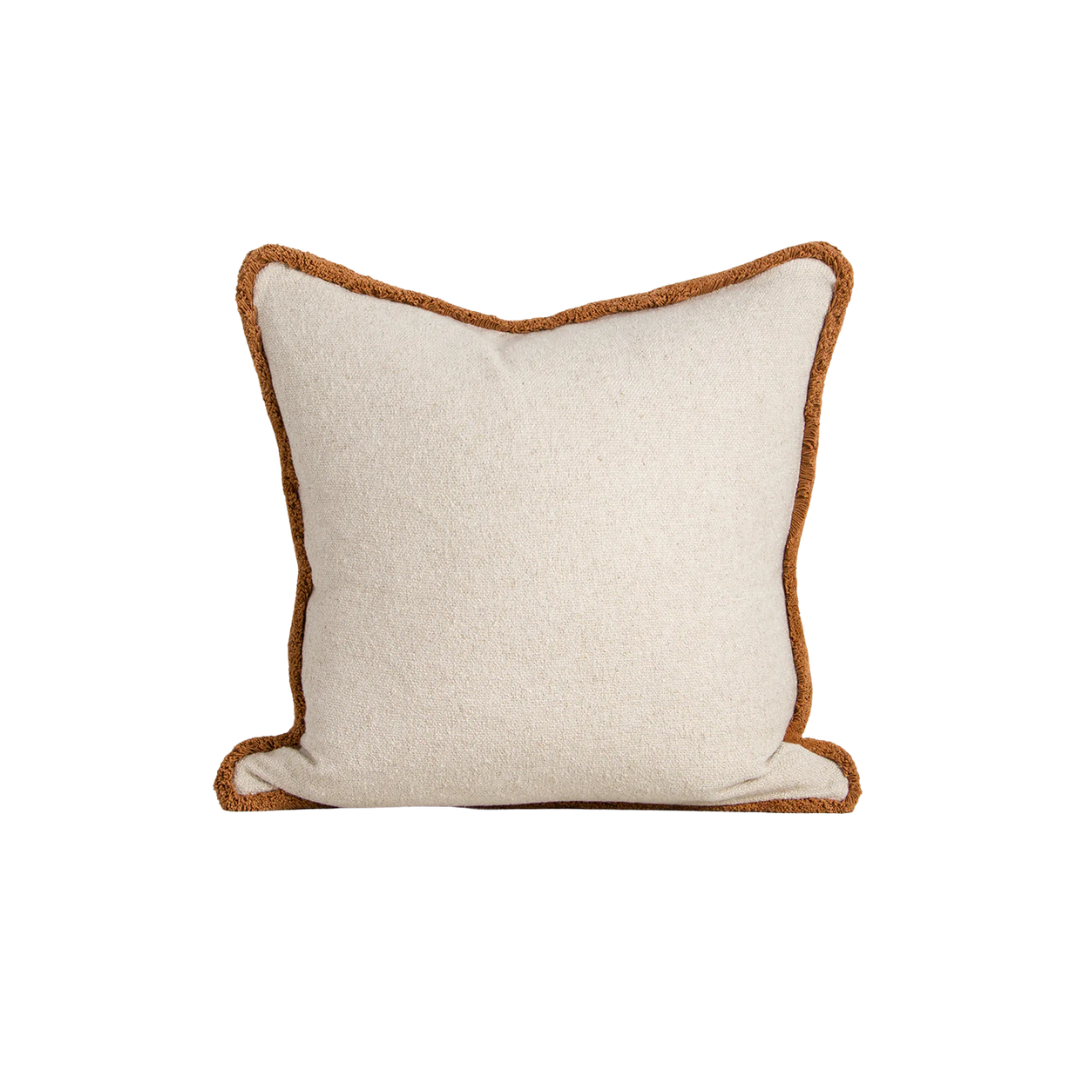 Made from a blend of cotton and recycled polyester, the sienna-toned fringe adds a subtle element of colour that adds depth and contrast to cushion pairings.