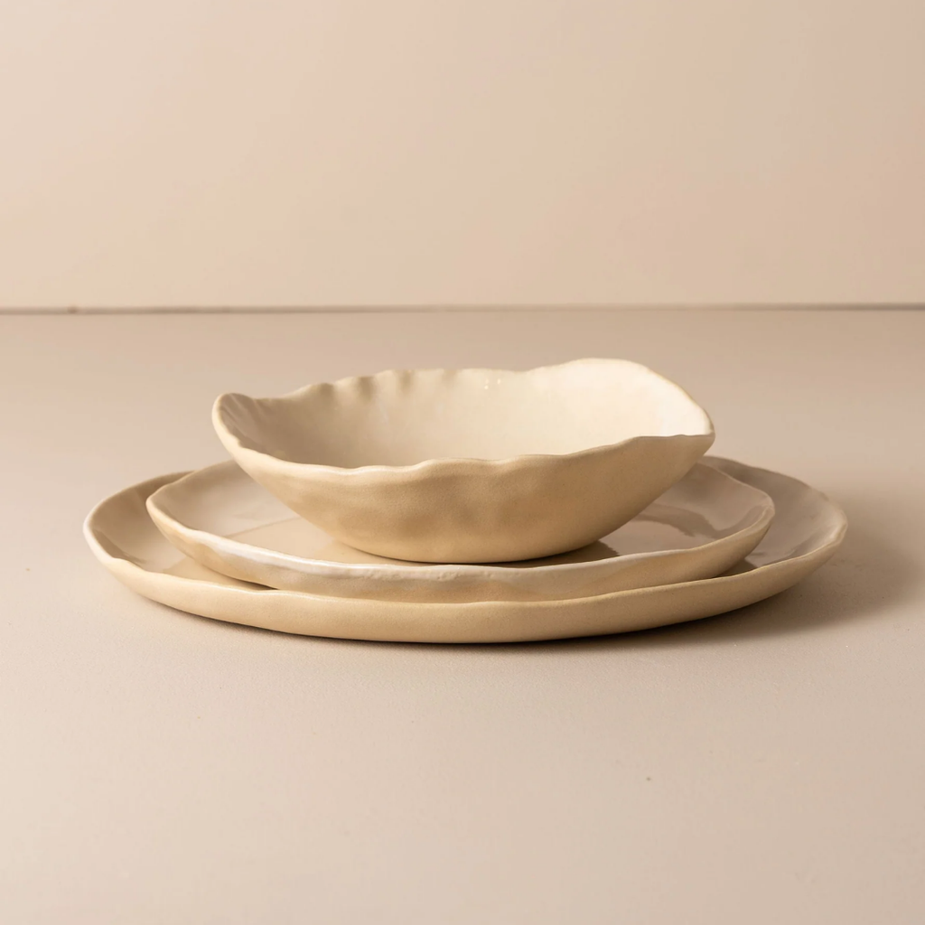 Handcrafted in Portugal, the Luz do Sol Dinner Plate captures the quiet beauty of everyday meals. Finished in a soft, sunlit cream glaze, its smooth form and gentle tone bring warmth and ease to the table.
