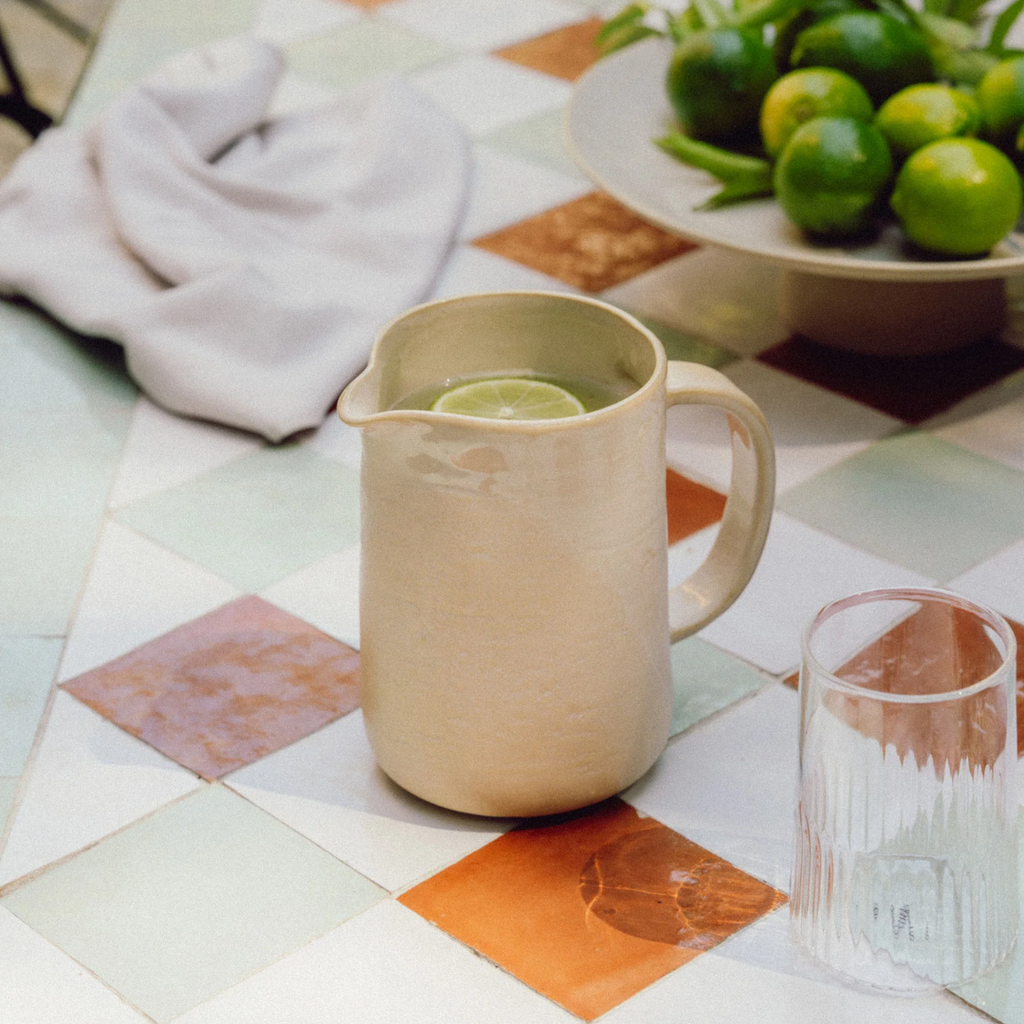 Handcrafted in Portugal, the Luz do Sol Jug blends function with soft, sculptural form. Finished in a sunlit cream glaze, it carries the warmth of handmade craft — natural, calm, and timeless.
