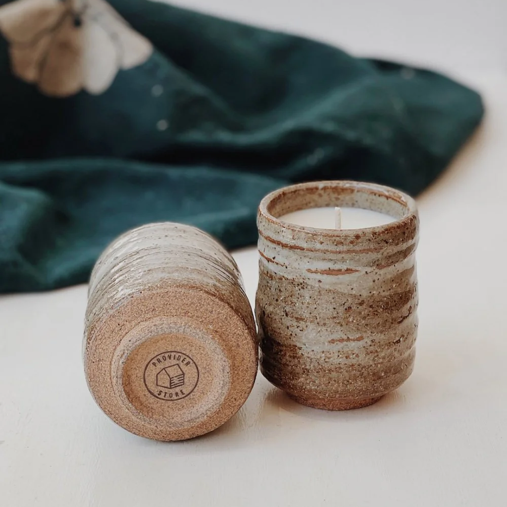 Made from red clay by a family run kiln in Seto, Japan, each cup is unique. Provider Store hand pour each candle in their Surry Hills workshop using 100% soy wax.