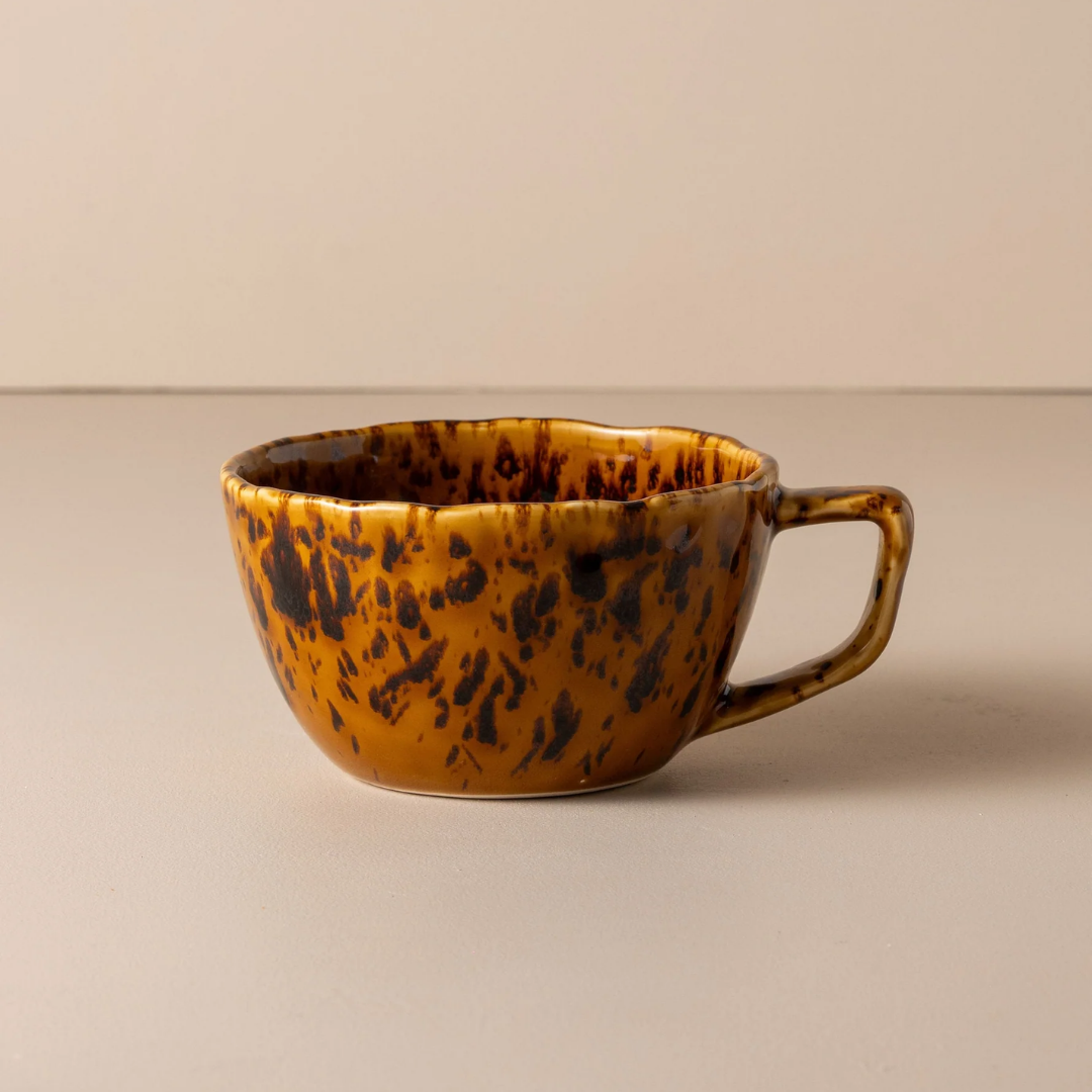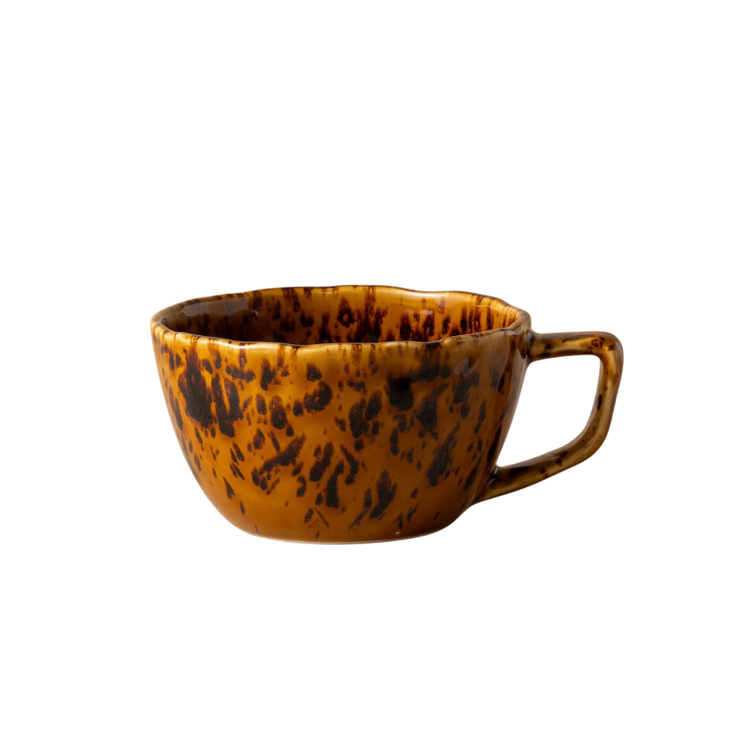 Handcrafted in Portugal, the Sunfleck Large Mug captures light in its amber glaze — a play of gold and warmth with every curve. Each piece carries unique flecks that make it distinctly its own.
