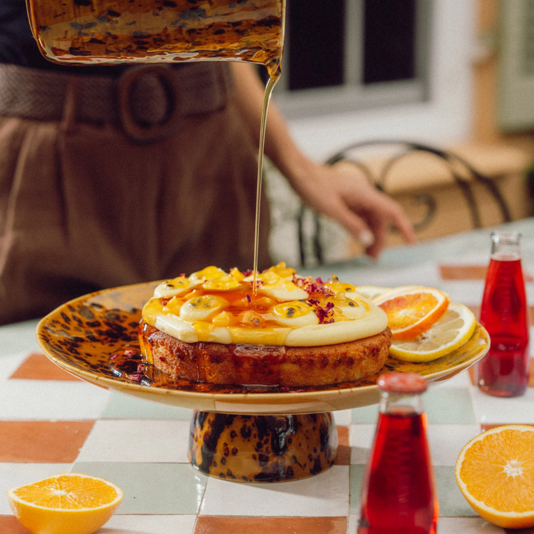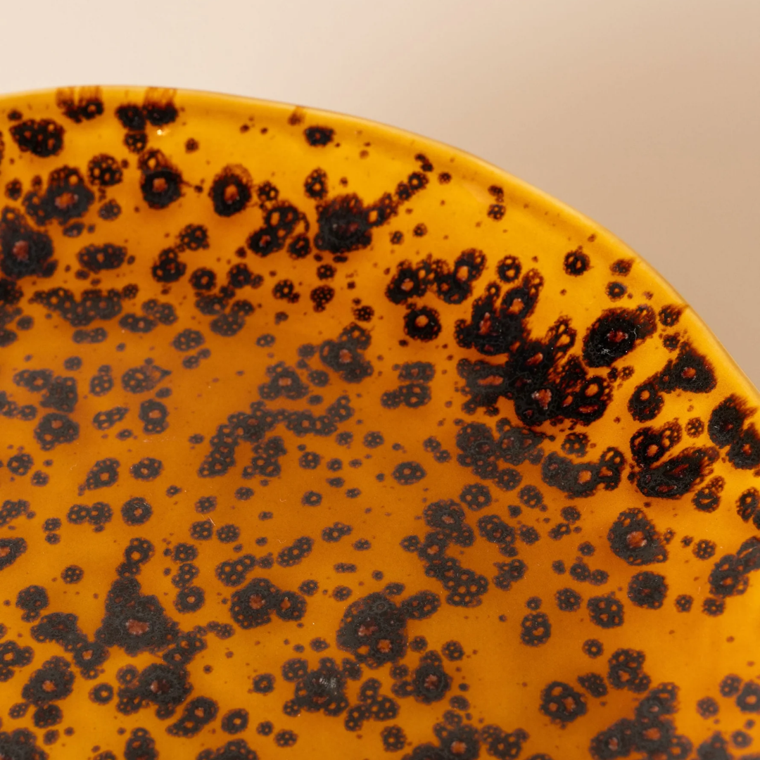 Handcrafted in Portugal, the Sunfleck Raised Bowl glows with a rich amber glaze that shifts beautifully with the light. Its gently elevated form and organic edge give it sculptural balance — radiant, grounded, and full of character.
