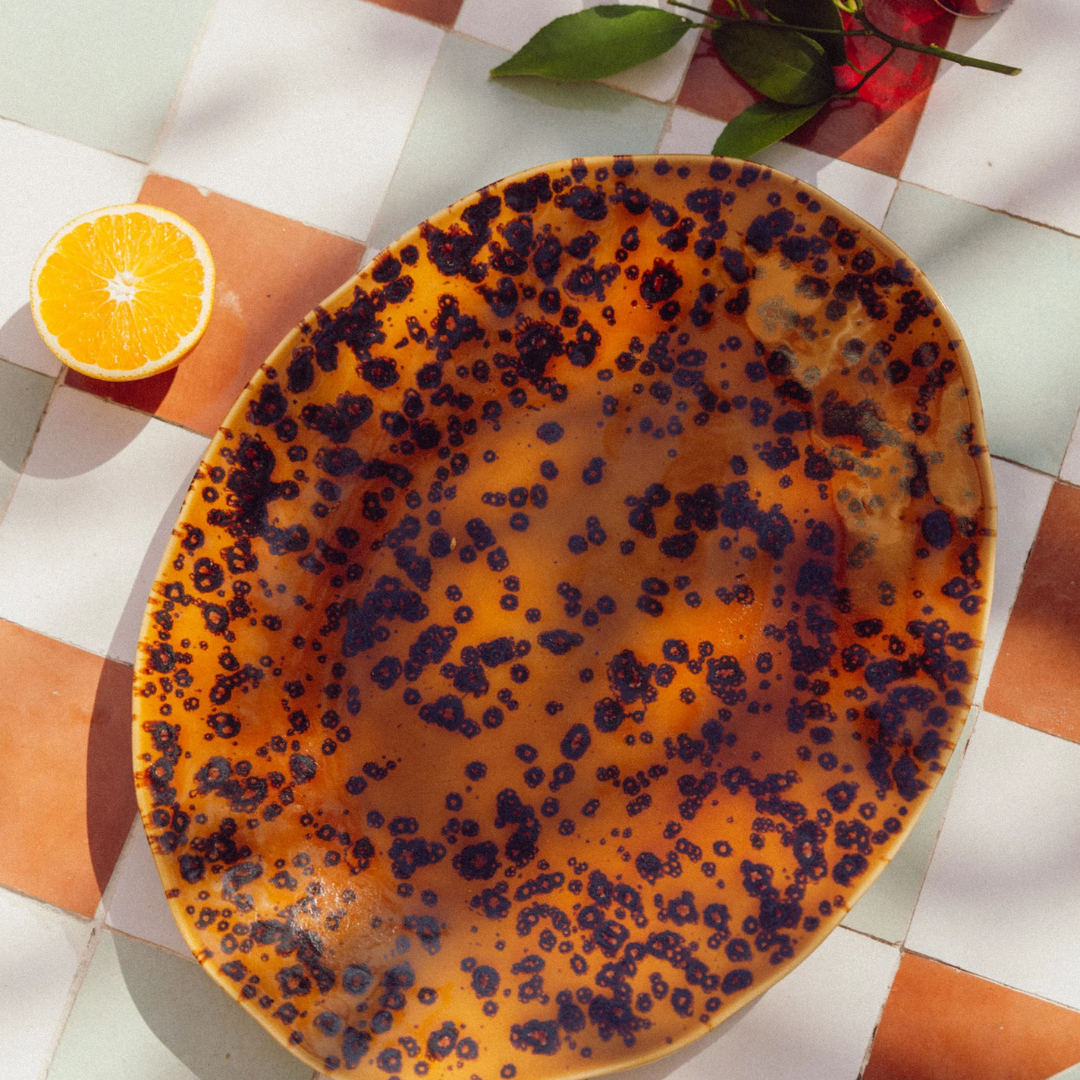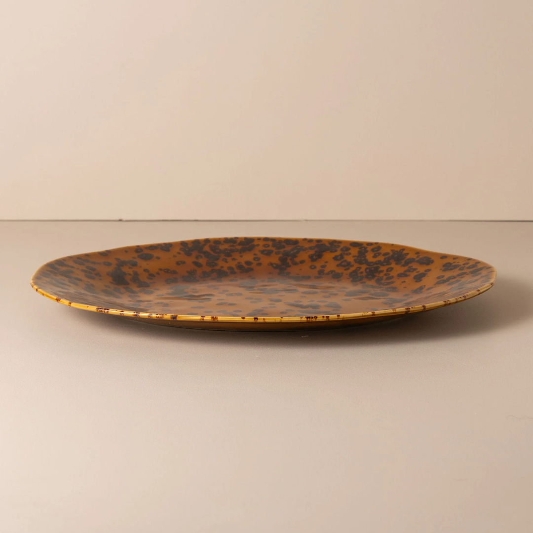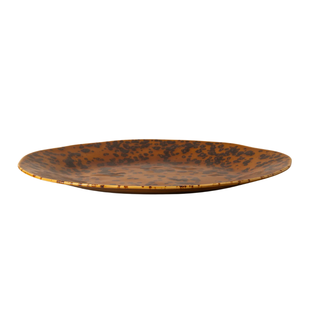 Handcrafted in Portugal, the Sunfleck Serving Platter brings light and depth to the table. Its amber glaze glows with golden undertones — shifting gently with the sun, like honey over clay.