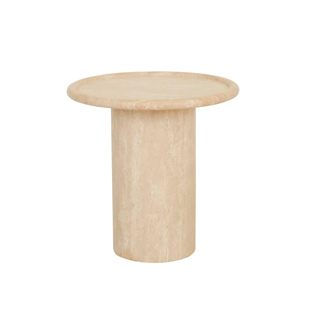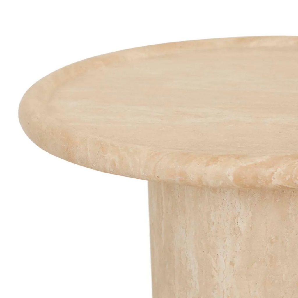 Elevate your living area with the Pippa Marble Side Table in Travertine. Featuring a classic oversized build and natural travertine top, it offers a sophisticated look. Ideal for retreat-style interiors, this side table blends timeless elegance with practical design. Its durable construction ensures long-lasting beauty.