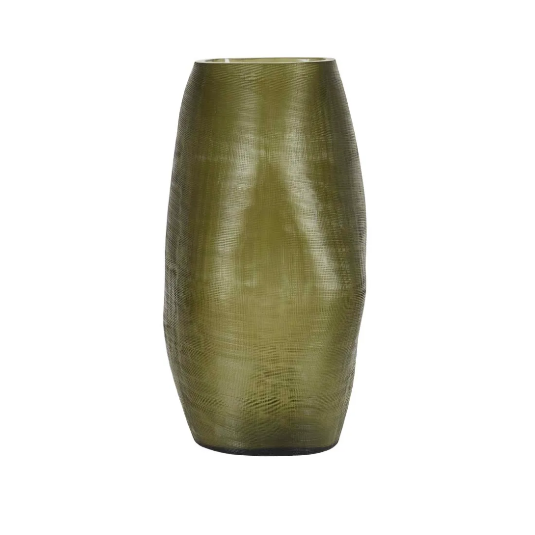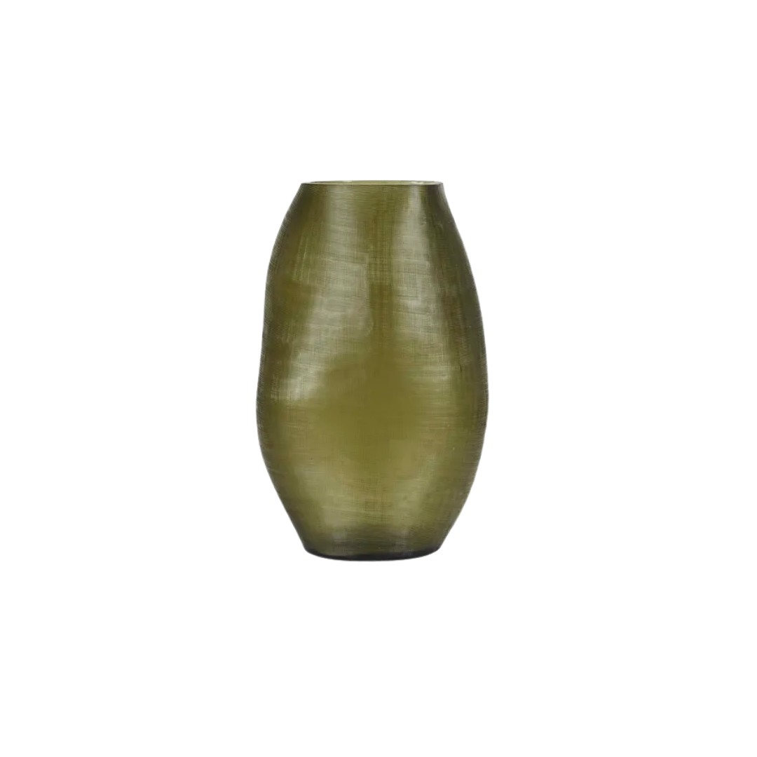 A softly sculptural form finished in a muted olive green, this vase brings warmth and quiet interest to a space. The brushed surface catches the light gently, making it just as considered styled on its own as it is with simple stems. A versatile piece that sits comfortably across shelves, consoles or dining tables.