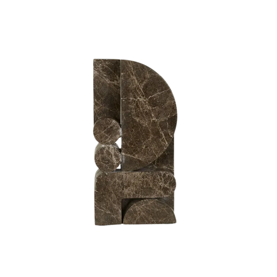 Sculptural grace emerges through cubist-inspired forms in the Rufus Monolith Sculpture. Natural emperador marble creates striking geometric angles, celebrating modernist design principles. Each unique composition stands boldly within contemporary spaces, delivering dramatic visual impact.