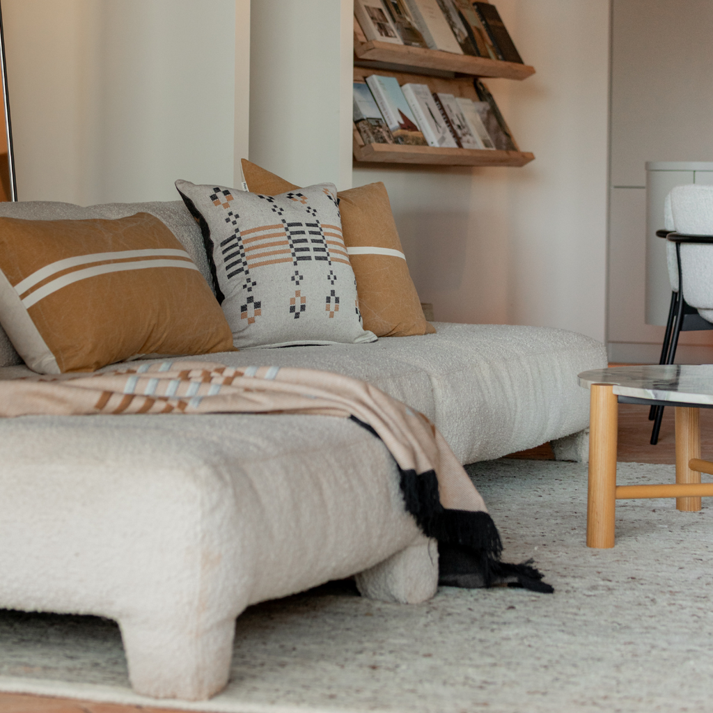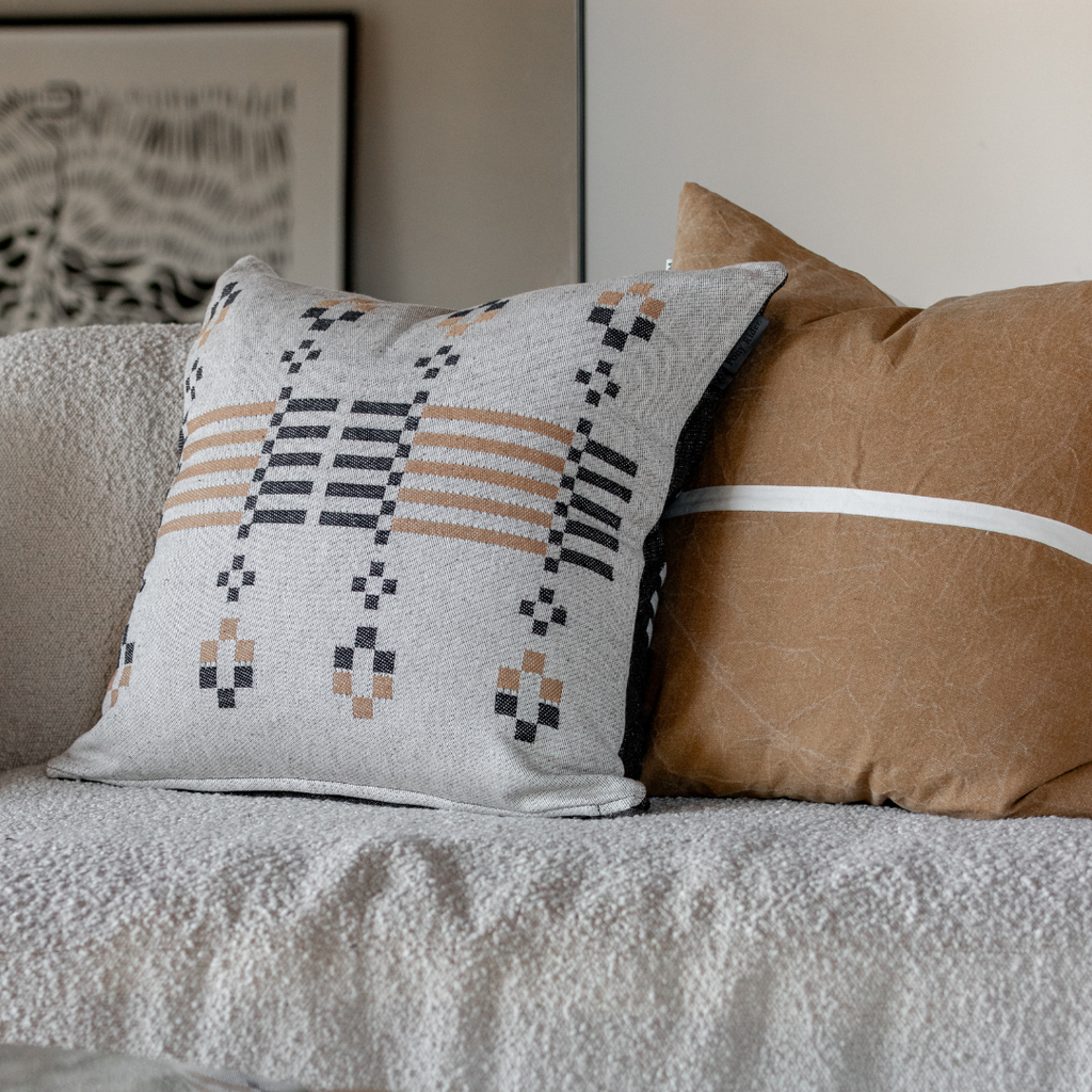 Made from tough cotton jacquard, it’s built to last, adding some serious texture and warmth to whatever space you throw it in. Whether it’s on the couch after a long day or packed for a weekend away, this cushion’s ready to roll. Soft to sink into, tough enough to keep up.