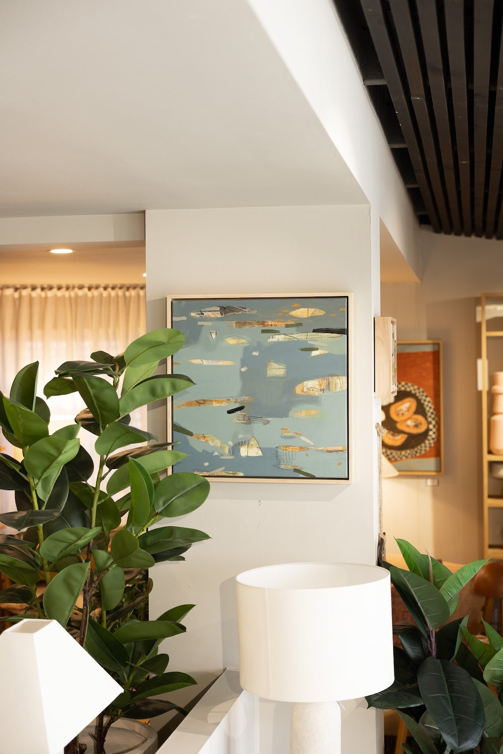 'Moonlight Lily Pond' is inspired by the wetlands of the gold coast under a new moon. Powdery blue moonlight reflects on the water surface and turns the lily pads and water flotsam a light golden hue.