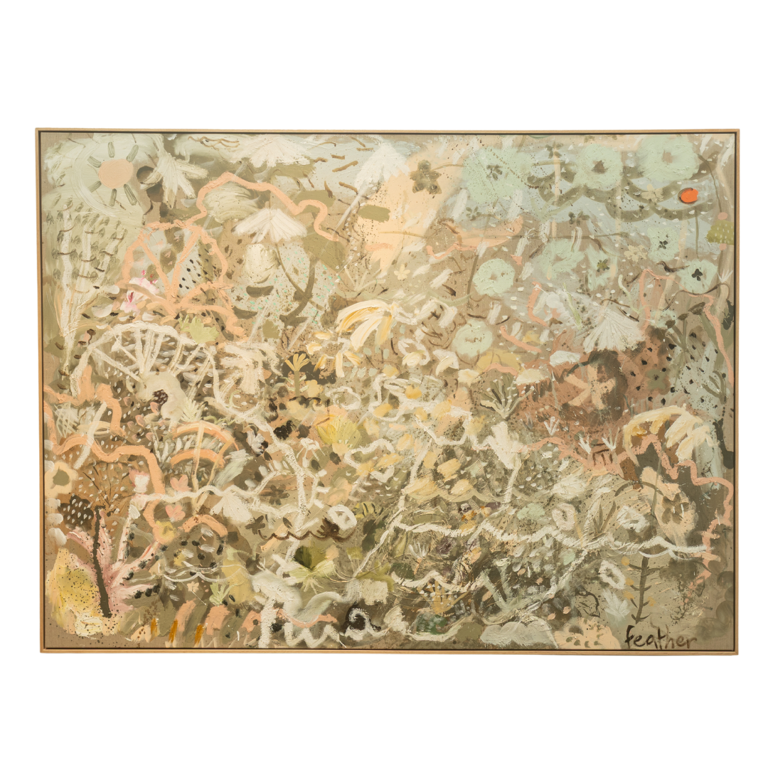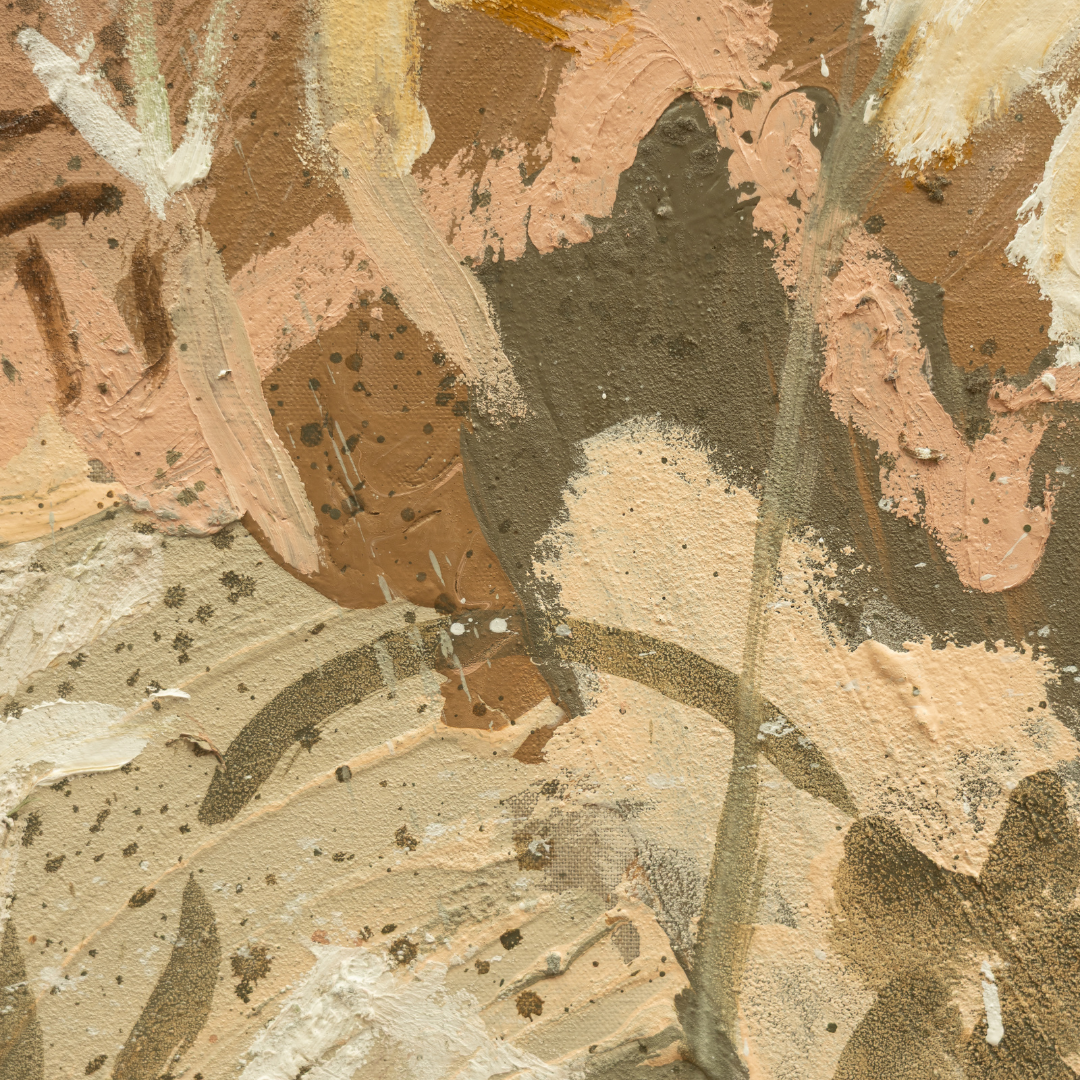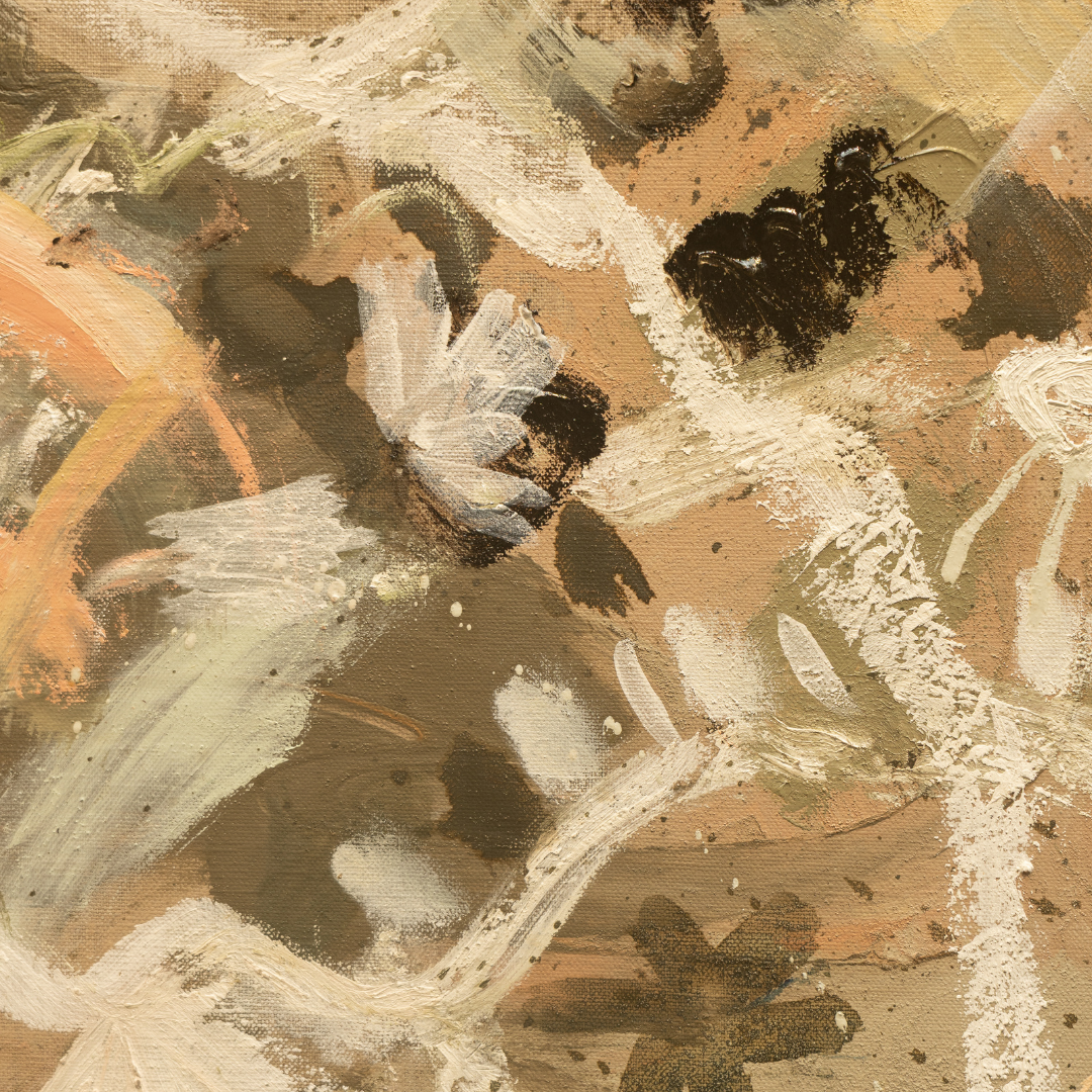 This piece is titled ‘ Sea Shine’ I love the feeling of the moving surface of the sea when the sunlight shines through the water and is refracted making dancing patterns on the floor of the ocean. I love swimming and seeing the sunlight penetrating the ocean, often creating visible, dramatic beams through the water. I tried to create that feeling in this original ocean piece…the beams of white oil paint are going through the work and reflect the light. Other patterns, coral and shells create the movement of the ocean which are all dancing together in this piece.