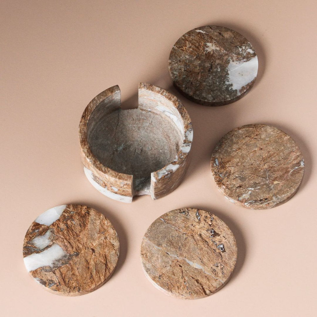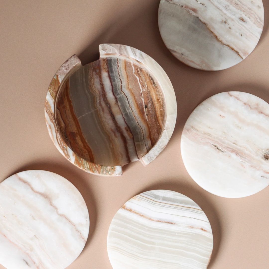 Choose from four captivating materials, including pink lagoon, grey lagoon, onyx travertine, and multi travertine. Each option showcases its own distinctive charm, providing you with a range of choices to match your personal style and complement your dining space. Whether used during everyday meals, special occasions, or entertaining guests, these coasters add a touch of elegance and sophistication to any setting.