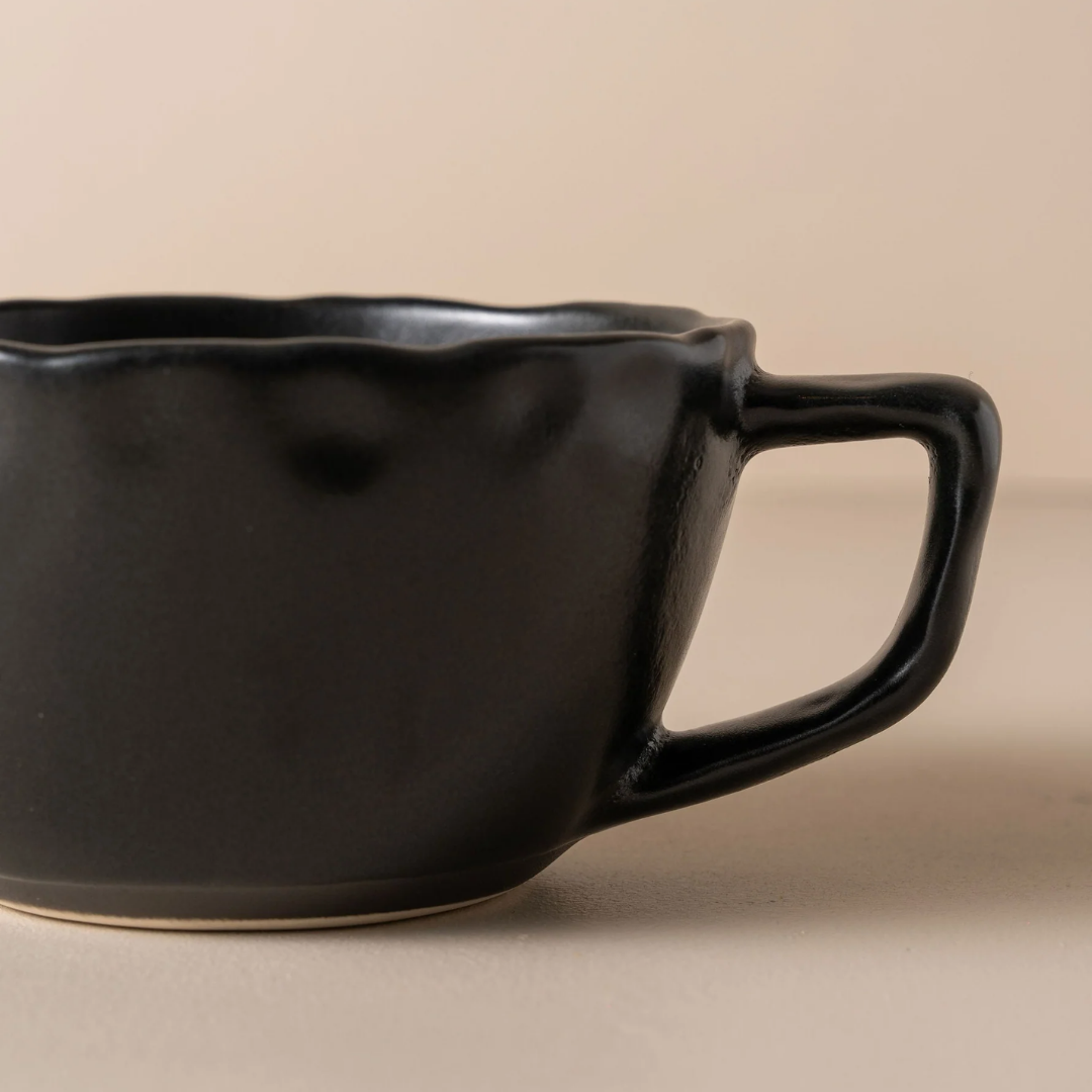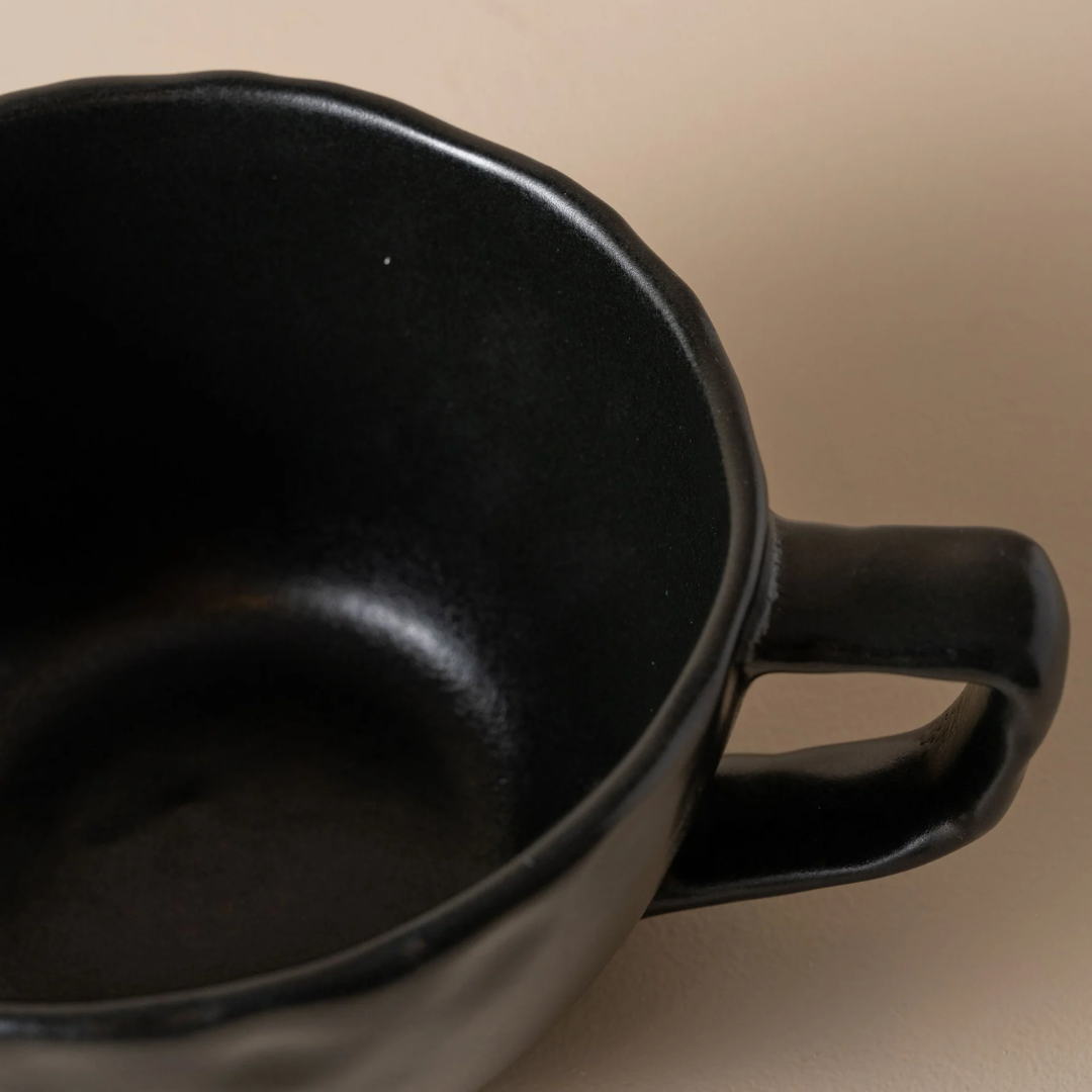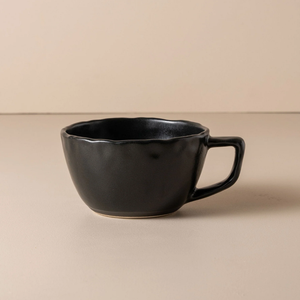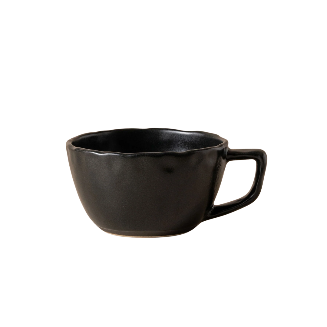 Handcrafted in Portugal, the Escuro Large Cup brings a sense of calm to the everyday ritual. Made from stoneware with a deep matte charcoal glaze, its generous shape and softly uneven edge sit naturally in the hand.