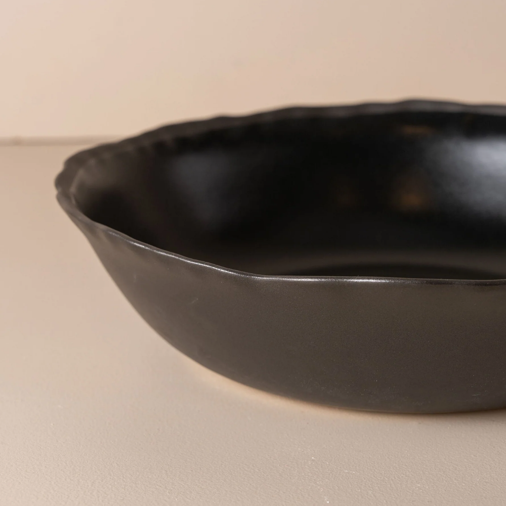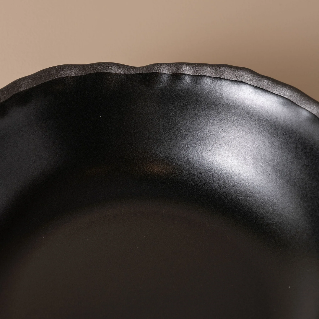 Handcrafted in Portugal, the Escuro Salad Bowl combines organic form with modern simplicity. Made from durable stoneware and finished in a deep matte charcoal glaze, each piece has subtle variations that reflect true artisanal craftsmanship. Perfect for serving salads, pasta, or fruit — a statement of quiet sophistication for any table.