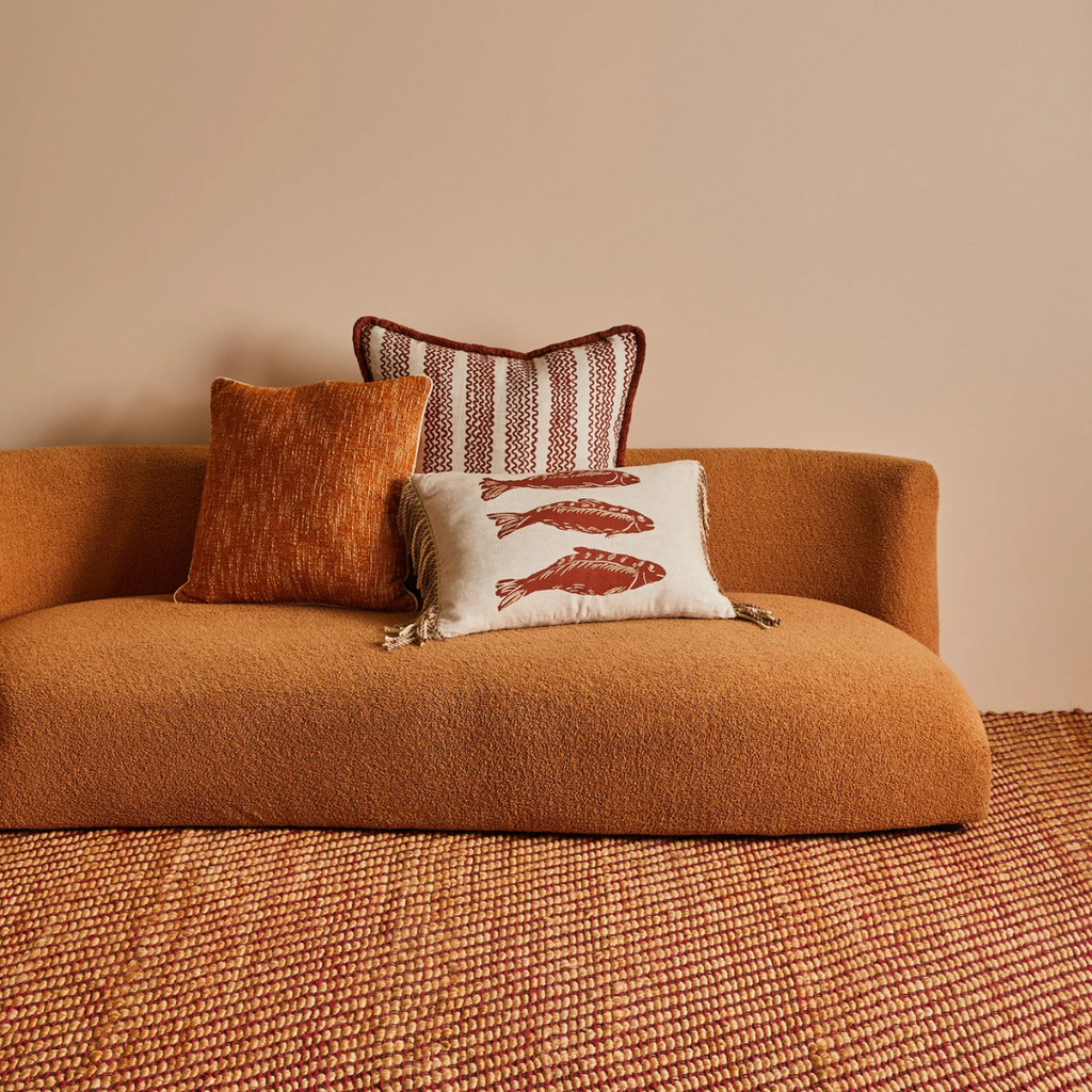 A brown-toned cushion that adds warmth and tactility. The tan colour is ideal for grounding brighter combinations or enhancing a tonal palette.