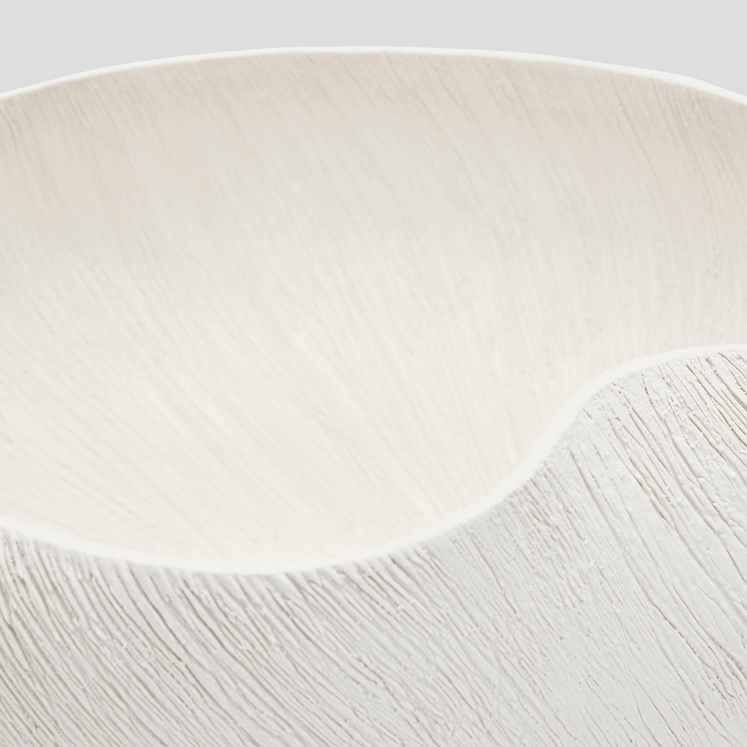 This bowl has a flowing, organic silhouette, as if it were gently expanding outward like a cosmic cloud. No harsh lines - its shape would seem almost in motion, with soft curves and asymmetry that hint at drifting gases.