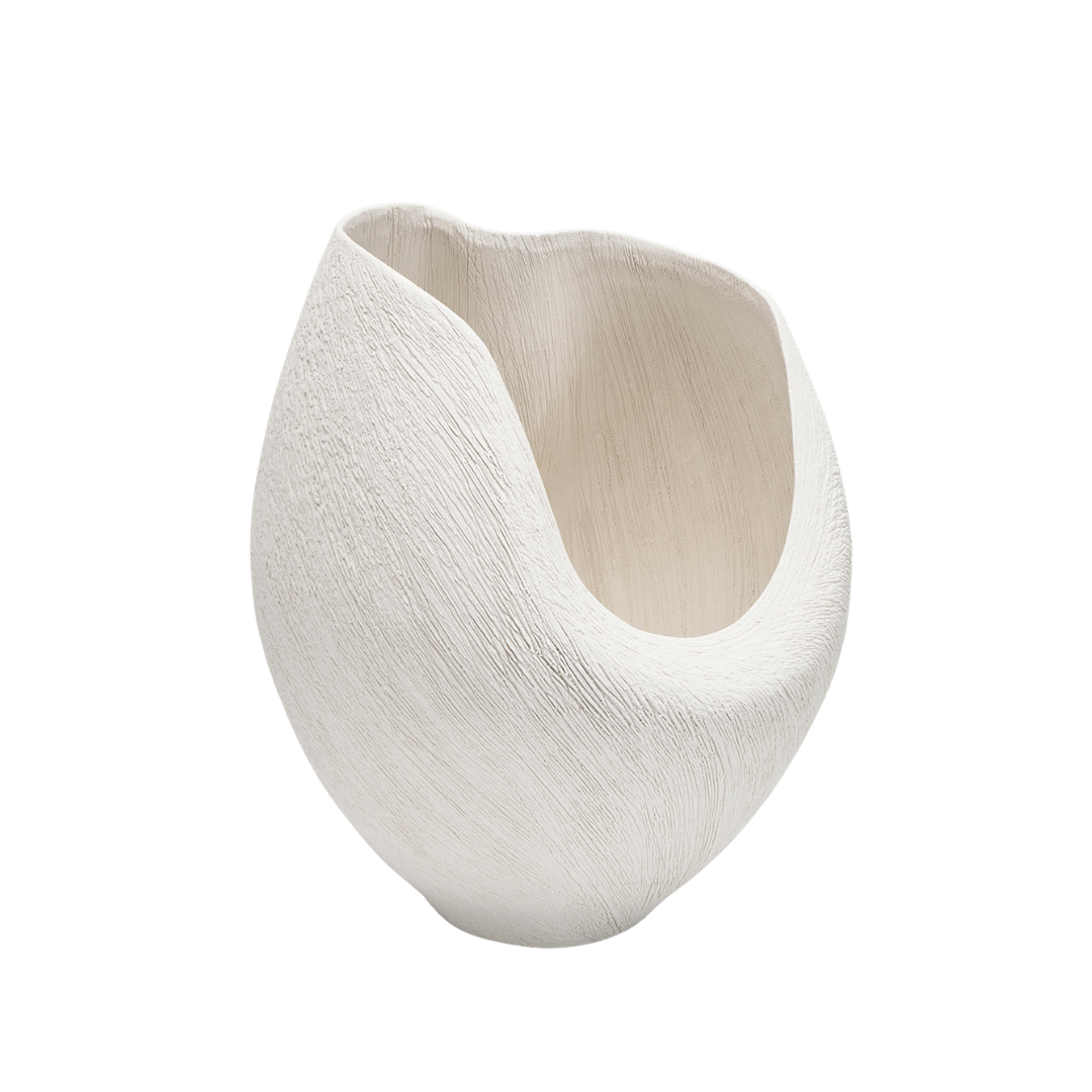 This vase has a flowing, organic silhouette, as if it were gently expanding outward like a cosmic cloud. No harsh lines - its shape would seem almost in motion, with soft curves and asymmetry that hint at drifting gases.