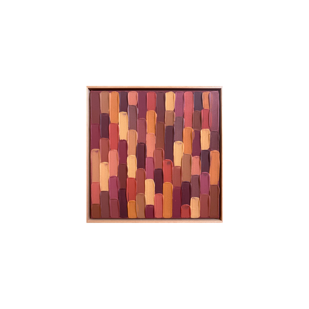 Auburn and Augie explore a warm, wintry palette of rust and auburn tones, alongside a subtle shift in technique — with elongated vertical strokes creating a sense of movement and flow. Small in scale, yet rich in presence, these works bring a quiet impact to any space.