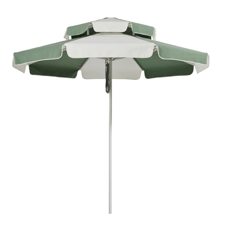 A little bit of Hollywood Regency and a whole lot of style, the Double Caspar features an all-white mast and arms, reinforced with marine-grade steel and nylon components for a seamless quality finish and longevity in residential and commercial environments.