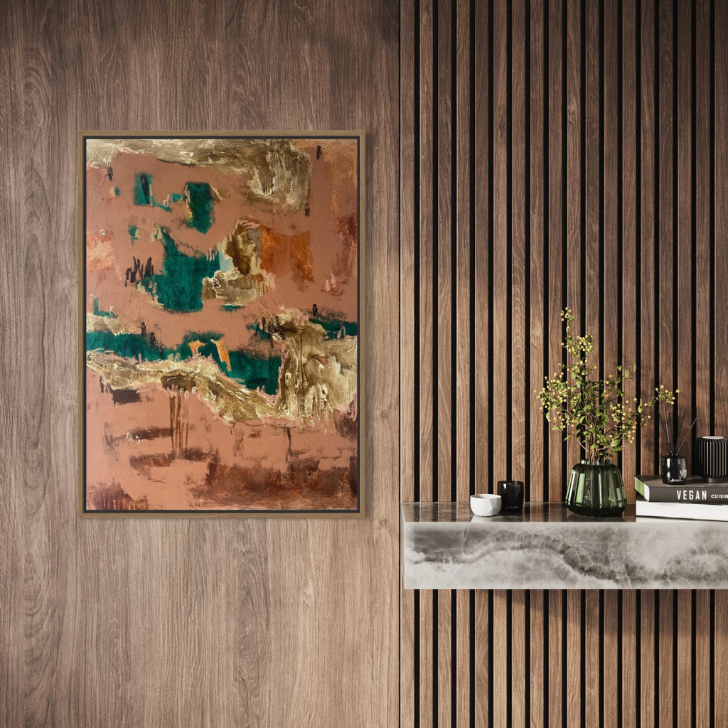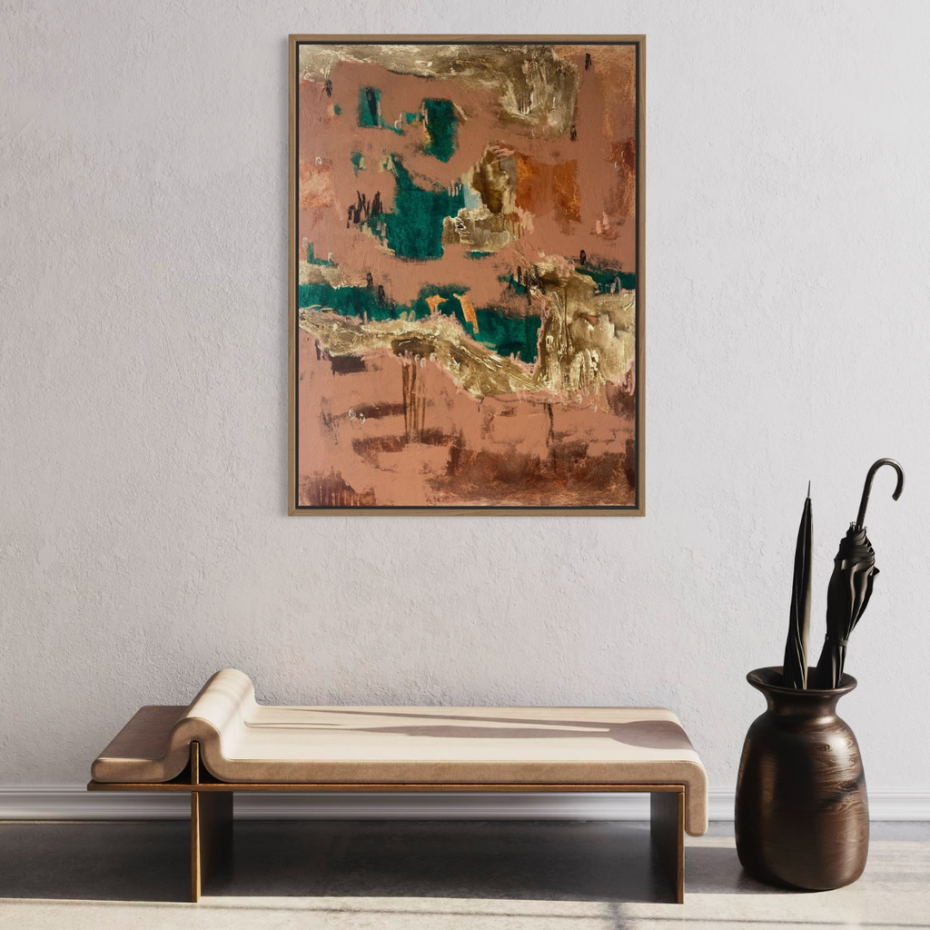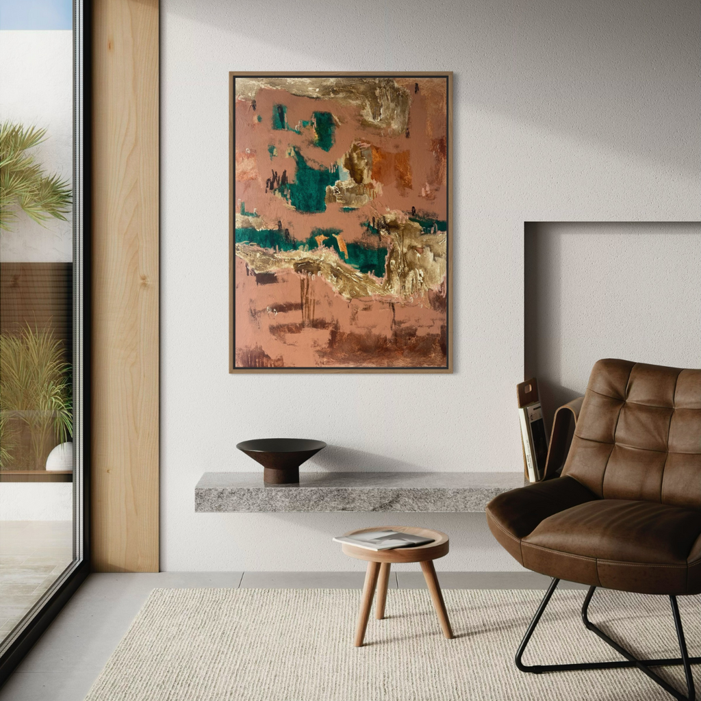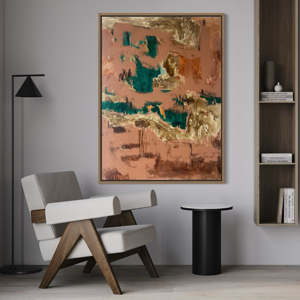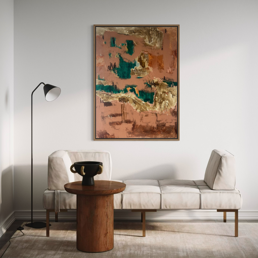 "Inspired by the shifting colours of Talle Creek- where ochre sands meet deep teal waters and light dances across the surface. A moment of stillness, painted in layers of memory and tide."