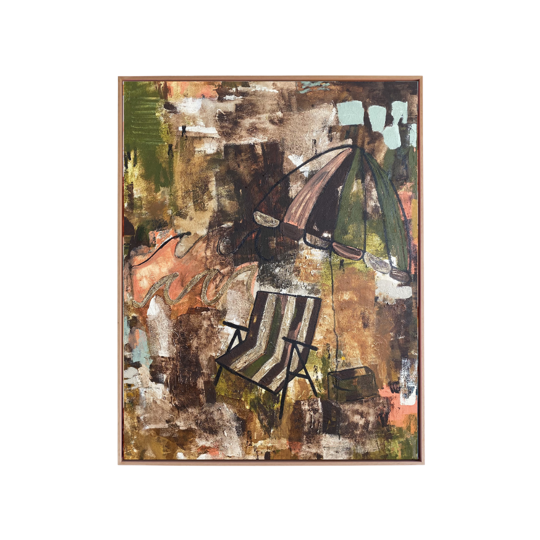 "'Resting Beach Chair' invites you to pause and soak in the quiet charm of sun, sand, and sea. A moment of calm captured in gentle hues — the perfect spot to dream, unwind, and let the waves do the thinking."