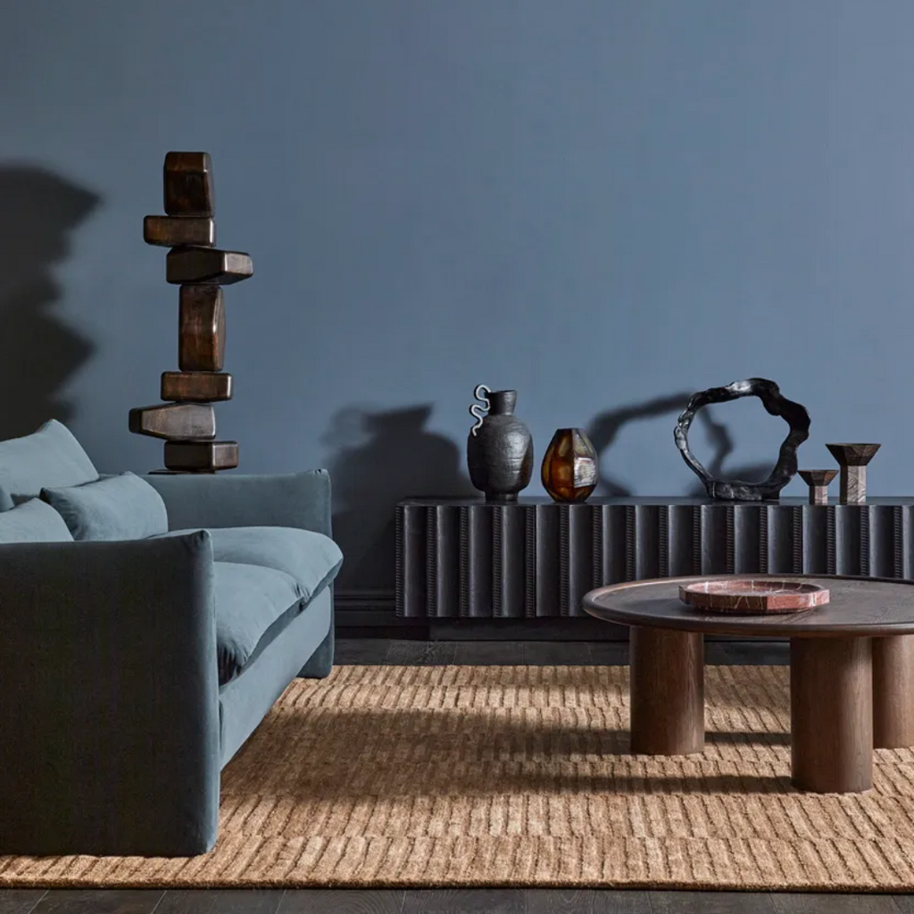 Angular artistry defines the Theron Drift Floor Sculpture, crafted from rich mango wood in striking slate onyx. Contemporary lines merge gracefully through geometric shapes, creating bold visual impact within modern spaces. Each handcrafted piece showcases distinctive grain patterns unique to natural wood materials.